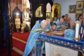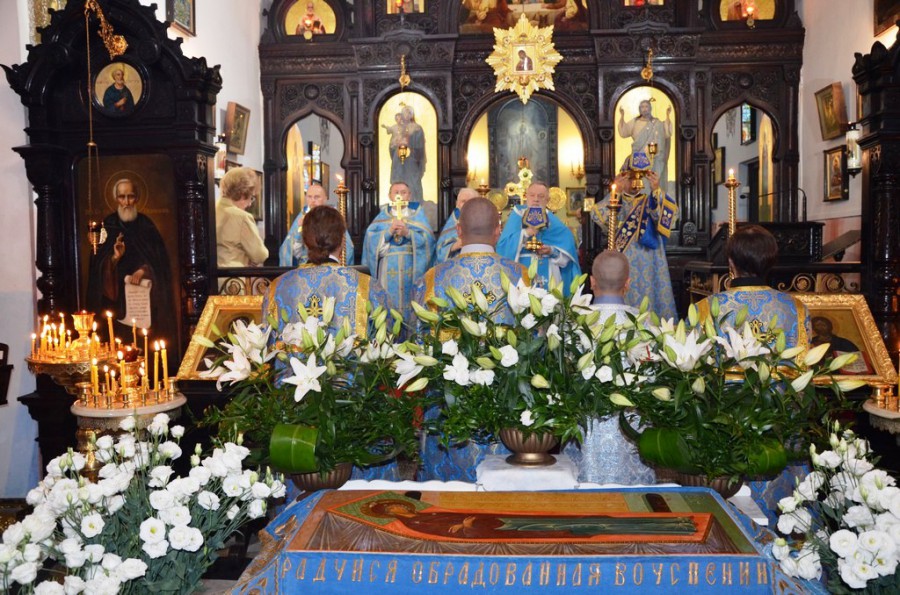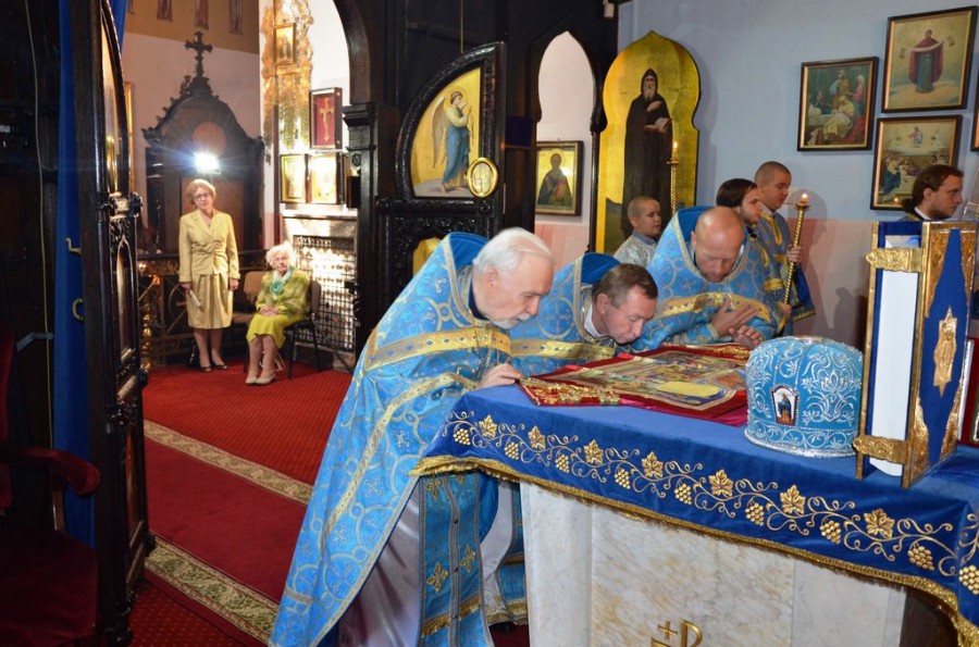Po zakończeniu Świętej Liturgii duchowieństwo udało się na środek świątyni na adorację spoczywającej tam na grobnicy płaszczenicy Przenajświętszej Bogurodzicy, podczas której w pięknych i pełnych miłości słowach modlitw śpiewach przez chór i odczytywanych przez duchowieństwo wysławiano Przenajświętszą Matkę Bożą. Następnie każdy z wiernych mógł osobiście pokłonić się płaszczenicy, a także przystąpić przy tym do jeleopomazanija.
