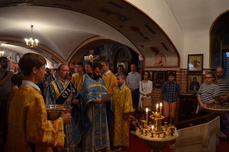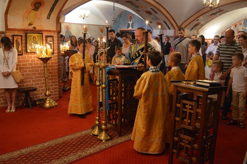 Dnia 30 sierpnia br., w Niedzielę XIII po święcie Pięćdziesiątnicy, po wakacyjnej przerwie, o godzinie 8.30 w naszej dolnej świątyni sprawowana była Święta Liturgia inaugurująca Nowy Rok Szkolny 2015/2016 w naszym Punkcie Katechetycznym. Temu uroczystemu nabożeństwu przewodniczył ks. prot. Adam Misijuk, w asyście ks. protodiakona Pawła Korobeinikova. Natomiast w górnej świątyni o godzinie 10.00 odbyła się Święta Liturgia, którą celebrował Proboszcz naszej Parafii – ks. mitrat Mikołaj Lenczewski, wspólnie z: ks. mitratem Rościsławem Kozłowskim, ks. prot. Marianem Bendzą, ks. prot. Piotrem Kosińskim, ks. prot. Piotrem Rajeckim, ks. protodiakonem Jerzym Dmitrukiem oraz ks. protodiakonem Markiem Zyc-Zyckowskim. W trakcie Świętej Liturgii List Apostolski Świętego Apostoła Pawła do Koryntian (1 Kor 16, 13-24) przeczytał lektor Andrzej Trofimiuk. Po przeczytaniu przez ks. protodiakona Jerzego Dmitruka fragmentu Świętej Ewangelii według Świętego Apostoła i Ewangelisty Mateusza (Mt 21, 33-42), pouczające kazanie wygłosił ks. prot. Piotr Rajecki. W pierwszej części swego słowa kaznodzieja nawiązał do usłyszanej w dzisiejszym fragmencie Świętej Ewangelii przypowieści Pana naszego Jezusa Chrystusa o gospodarzu winnicy i przewrotnych rolnikach. W tym roku XIII Niedziela po święcie Pięćdziesiątnicy przypadła na ostatnią niedzielę sierpnia, a w każdą ostatnią niedzielę tegoż miesiąca Matka Cerkiew świętuje pamięć cudotwórczej Częstochowskiej Ikony Matki Bożej. W związku z tym w drugiej części swego słowa ks. Piotr przybliżył wiernym historię tejże wspaniałej ikony Przenajświętszej Bogurodzicy, której pamięć dzisiaj obchodzimy oraz opowiedział o licznych cudach z Nią związanych.