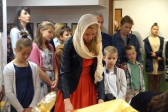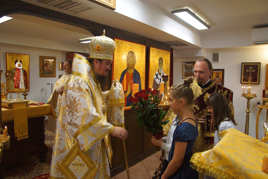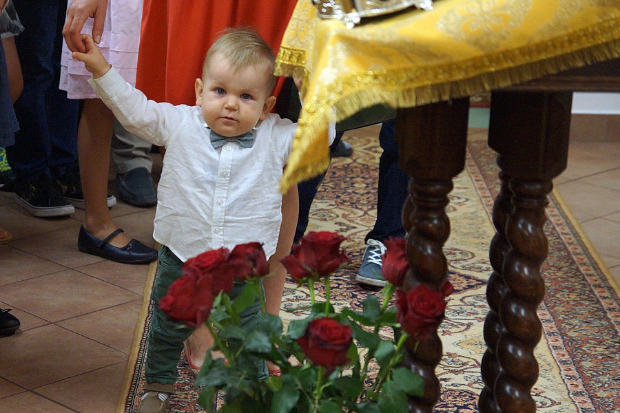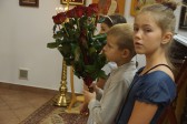 Na modlitewną pamiątkę biskup Jerzy wręczył wszystkim ikonkę patrona kaplicy św. Bazylego. Natomiast ks. Paweł Korobeinikow w imieniu wolskiego proboszcza - ks. Mikołaja Lenczewskiego, ks. Adama Misijuka oraz całego punktu katechetycznego podziękował biskupowi oraz proboszczowi za możność przybycia i wspólną modlitwę, a dzieci wręczyły symboliczne róże.