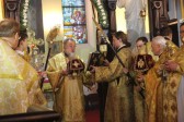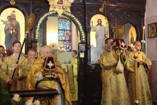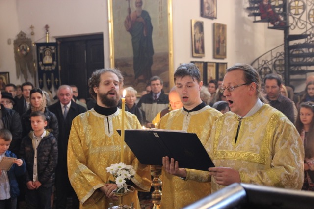 Podczas Boskiej Liturgii śpiewał chór parafialny pod dyrekcją prof. Włodzimierza Wołosiuka, który na zapriczastnom wykonał m.in. uroczysty koncert Nr 26 D. Bortniańskiego „Hospodi Boże Izrailew (…) jako imia Twoje prizwano na chram siej”.