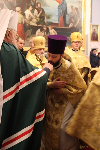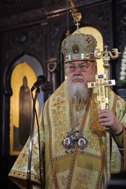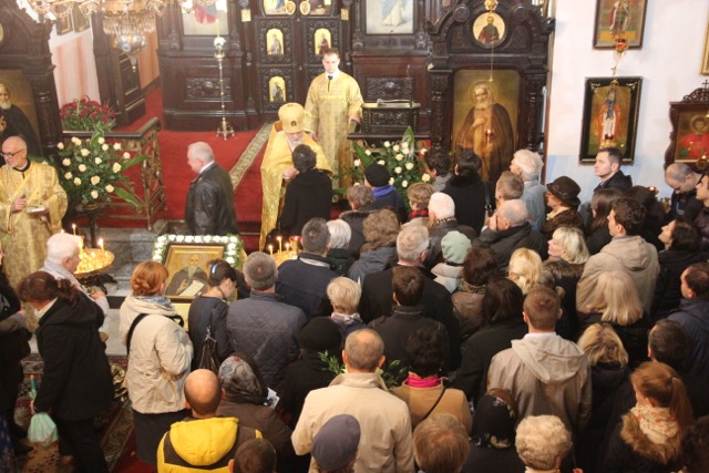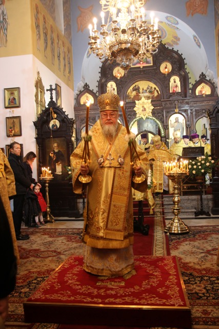 W pouczającym słowie homilii, metropolita Sawa podkreślił znaczenie wiary i stałą potrzebę ewangelizacji. Powiedział m.in.: „… Każdy wierzący chrześcijanin jest tym, który niesie do końca swoich dni słowa św. Ewangelii przekazanej przez Apostołów, która jako żywe Słowo Boga przetrwało do naszych czasów i nigdy nie przeminie.” Na kanwie wiary i pragmatyzmu pierwszych uczniów Chrystusa i współcześnie budowane są świątynie, w których wychwala się imię Boże. „Przebywamy w wyjątkowym miejscu, ponieważ w tej świątyni znajdują się cząstki nauczania apostolskiego, przechowywane jako relikwie świętych męczenników - naszych przodków. Mamy dzisiaj świadomość, że nie jesteśmy godni przebywać w świątyni, gdzie pochowany jest m.in. pierwszy męczennik za wiarę i autokefalię polskiego Kościoła – bp Jerzy (Jaroszewski). Lecz krew męczennika zawsze przynosi owoc. Odnotowujemy 90- lecie samodzielnego istnienia Kościoła prawosławnego w granicach Polski w zapoczątkowanym dziele metr. Dionizego (Waledyńskiego), który także jest tu pochowany. A także, spoczywające w tej cerkwi, relikwie św. męcz. protoprezbitra płk. Bazylego Martysza, dają świadectwo wiary. Kiedy spotykamy się tutaj na modlitwę, winniśmy o tym pamiętać i zastanowić się nad swoją osobistą postawą w odpowiedzialnym głoszeniu Słowa Bożego. Niezbędnym warunkiem w postawie chrześcijanina jest wiara i modlitwa. One pomagały i naszym „bieżeńcom”(uchodźcom) 100 lat temu. I w dzisiejszych czasach zobowiązani jesteśmy z pieśnią chwalebną Bogu głosić nieustannie Jego Ewangelię. Współczesny świat, który zawiera się w patologicznym doświadczeniu upadku potrzebuje świadectwa Prawosławia. Nie mogą nas zniechęcać prześladowania, bowiem każdy, kto wierzy w Boga będzie poddany próbom. Bądźcie miłosierni, jak i Ojciec Wasz jest miłosierny - oznacza to, że ofiarność Syna Bożego jest także nauką dawania świadectwa i nierzadko ofiary w życiu Kościoła i uświęcania otaczającego nas świata. W naszych dzisiejszych, złożonych czasach wymagany jest od człowieka rozsądek, ofiarność, pokora i odpowiedzialność, bowiem od tych wartości zależy dzień jutrzejszy nas, prawosławnych i otaczających nas ludzi. Jak nawołuje Tretulian, chrześcijanin winien stać się drugich Chrystusem, tak aby św. Ewangelia stała się moim życiem. Bądźcie zatem uczniami i świadkami nauczania Chrystusa, szczególnie wśród młodego pokolenia, aby stworzyć silną przeciwwagę dla zgorszenia tego świata. Bądźmy czujni i badajmy ducha, czy pochodzi on od Boga, czy jest tylko mądrością tego świata.”