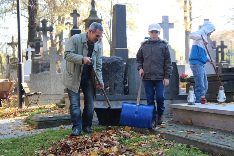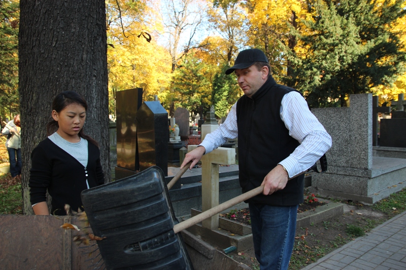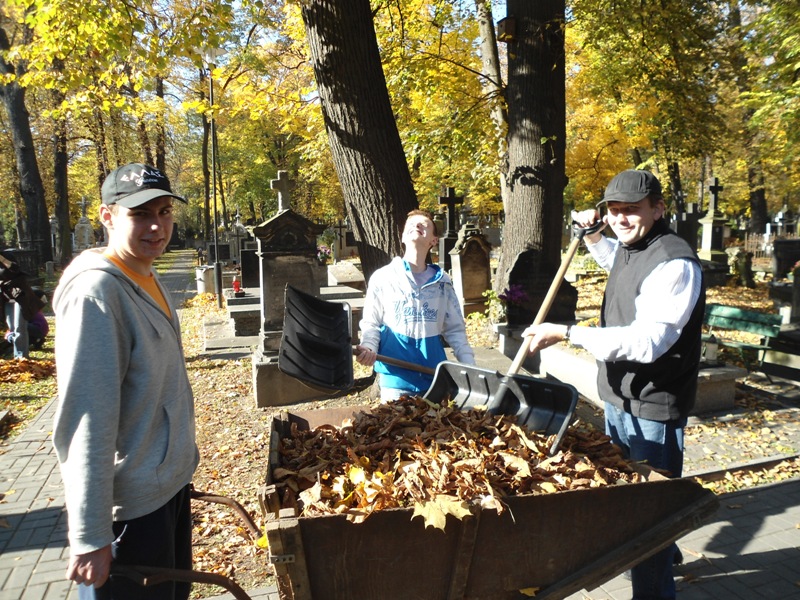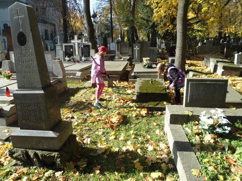Od kilku lat, stało się tradycją w naszej parafii, że w Sobotę Św. Dymitra, po nabożeństwie, zebrana młodzież wraz z rodzicami i chętnymi sprząta kwatery na naszym prawosławnym wolskim cmentarzu. Tego dnia pogoda nam dopisała, część grobów została przybrana pięknymi kasztanowymi krzyżami. Po skończonej pracy spotkaliśmy się w sali domu parafialnego na herbatce i pysznej pizzy.