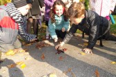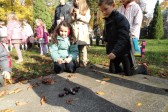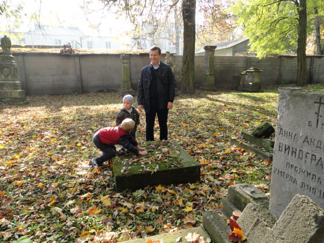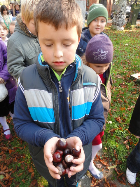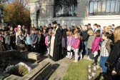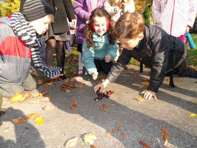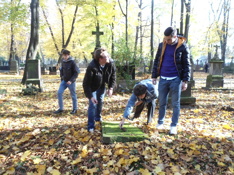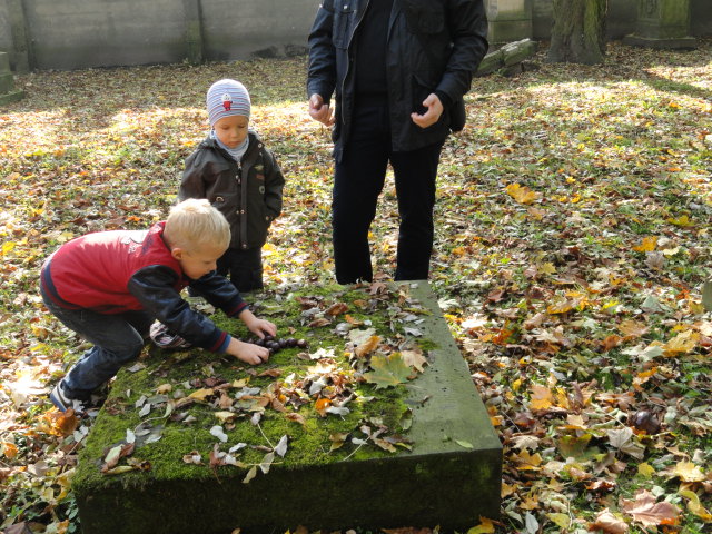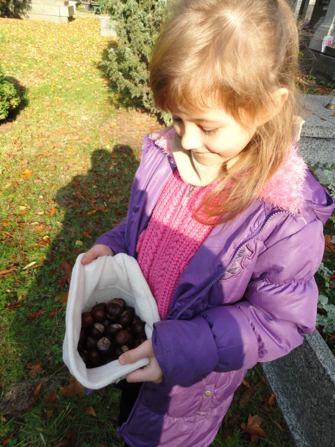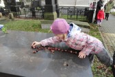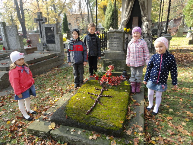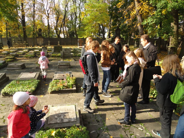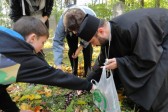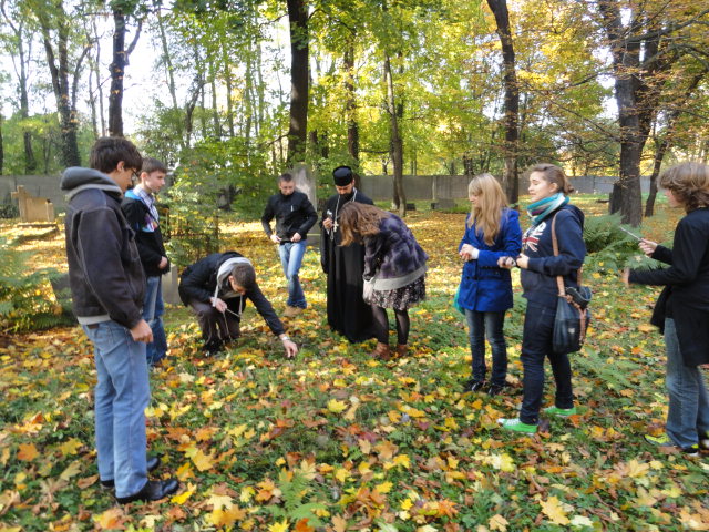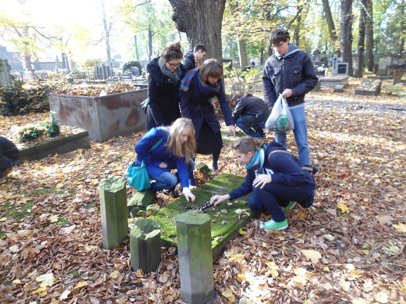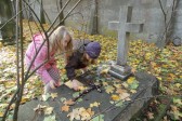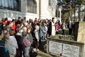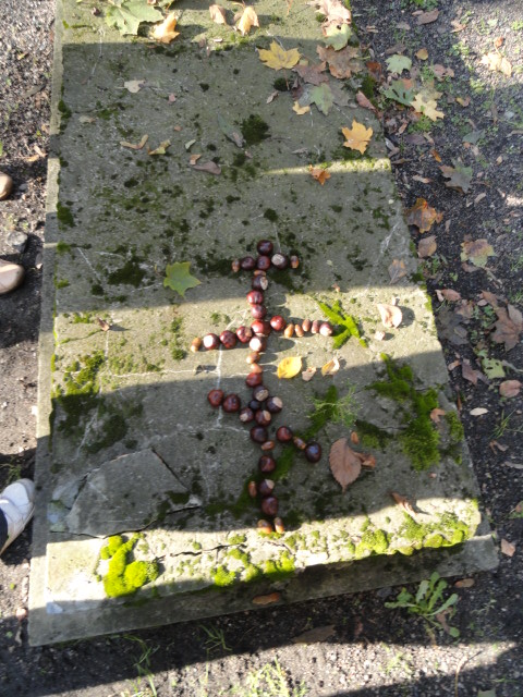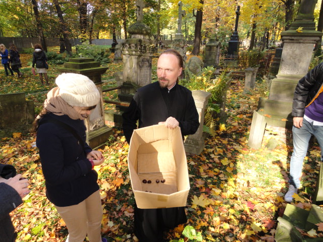 W dniu dzisiejszym po lekcjach religii spotkaliśmy się przy grobie zamordowanych dzieci z parafialnego sierocińca (grób z prawej strony cerkwi). Pomodliliśmy się razem za dusze zmarłych, następnie udaliśmy się w różne zakątki naszego cmentarza, by na opuszczonych, zapomnianych grobach ułożyć krzyżyki z kasztanów. Ten symboliczny gest to przedłużenie wczorajszej modlitwy za dusze zmarłych, wyraz naszej pamięci i modlitwy za tych, których ciałem pośród nas już nie ma.
