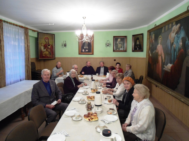 Po modlitwie w cerkwi Seniorzy udali się na wspólną agapę w sali domu parafialnego. W dalszej części spotkania poruszono sprawy bieżące, a Pan Jan Bołtromiuk opowiedział o Prawosławnych Monasterach Zakarpacia.