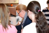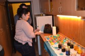 Zaprezentowała wszystkim jedną z wielu technik dekoracyjnego zdobienia jajek wielkanocnych – pisankę. Jej tworzenie odbywa się poprzez rysowanie na skorupce odpowiednich wzorów za pomocą roztopionego wosku, a następnie zanurzanie ich w barwniku.