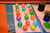 Rodzice również z sukcesami próbowali swoich sił. Dla nich spotkanie stworzyło okazję do wymiany wspomnień z dzieciństwa, rozmów na temat sposobów i technik przygotowywania jajek wielkanocnych przez mamy czy babcie. Dzięki temu zebrani mogli dowiedzieć się jakich niegdyś używano technik i materiałów do ozdabiania tradycyjnego wielkanocnego jajka.