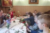 Na uczestników czekały już przygotowane materiały – gałązki wierzby i bukszpanu, a także kwiaty, wstążki i liczne przybory, niezbędne do wykonania palem.