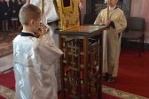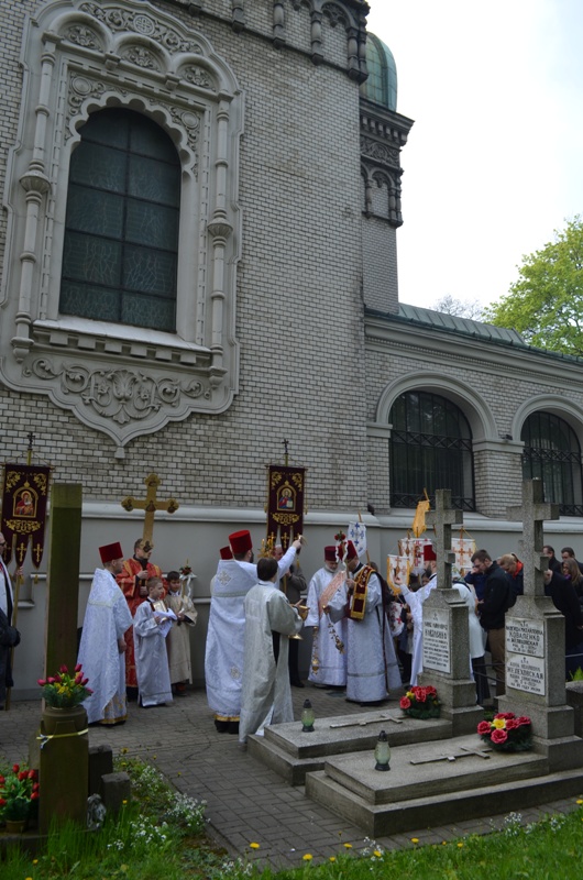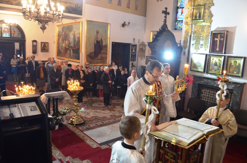 W Paschalny Poniedziałek uroczyste nabożeństwo w naszej Parafii rozpoczęło się od zaśpiewania przez chór Czasow Paschy. Punktualnie o godzinie 9:00 radosnym odśpiewaniem stichirów Paschy na przemian z troparionem „Христо́с воскре́се из ме́ртвых, сме́ртию смерть попра́в, и су́щим во гробе́х Живо́т дарова́в”, rozpoczęła się paschalna Święta Liturgii, której przewodniczył ks. mitrat Michał Dudicz, w asyście: ks. prot. Adama Misijuka, ks. prot. Piotra Kosińskiego, ks. prot. Piotra Rajeckiego, ks. protodiakona Jerzego Dmitruka, ks. protodiakona Marka Zyc-Zyckowskiego oraz ks. protodiakona Pawła Korobeinikova. W trakcie nabożeństwa Dzieje Apostolskie (Dz 1, 12-17, 21-26) przeczytał ks. protodiakon Paweł Korobeinikov, zaś fragment Świętej Ewangelii według Świętego Apostoła i Ewangelisty Jana (J 1, 18-28), został przeczytany przez ks. protodiakona Jerzego Dmitruka.