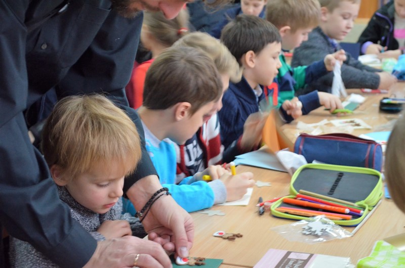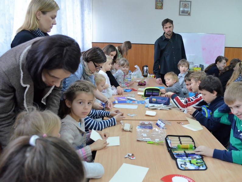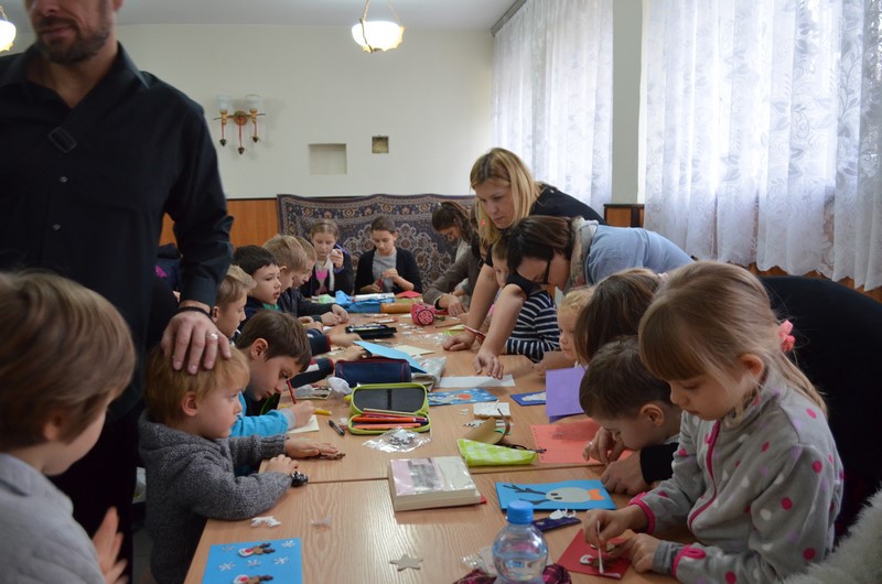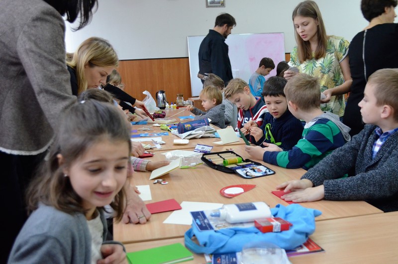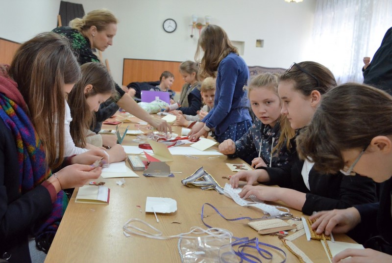 W ramach przygotowań do Kiermaszu Świątecznej Pomocy w dniu 13 listopada w naszym domu parafialnym odbyły się pierwsze warsztaty. Dzieci, młodzież wraz z rodzicami pod kierunkiem matuszki Joli Rajeckiej z ogromnym zapałem i pomysłami przystąpili do pracy. W miłej i rodzinnej atmosferze w naszej „manufakturze” wyprodukowano niepowtarzalne i oryginalne karty świąteczne. Kartki będzie można zakupić podczas Kiermaszu w dniu 4 grudnia br..