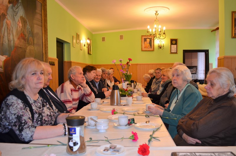 W domu parafialnym odbyła się druga część spotkania przy filiżance herbaty bądź kawy oraz słodką bułką dla pokrzepienia sił. Na początku Seniorzy pozdrowili o. Adama Misijuka z mianowaniem na stanowiska proboszcza naszej parafii. Do życzeń dołączono piękny kosz kwiatów oraz album Architektura Przyroda Województwa Podlaskiego.