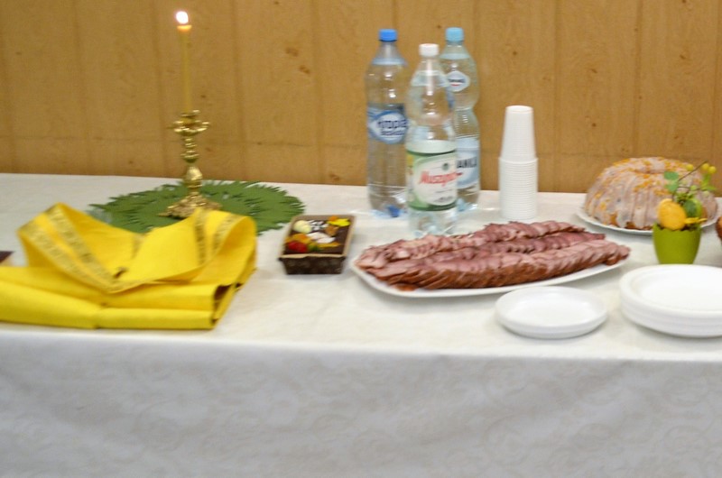 Po zakończeniu nabożeństwa ks. Proboszcz z głębi serca pozdrowił wszystkich wiernych z Wielkim Dniem Paschy Chrystusowej oraz zaprosił wszystkich na wspólną agapę przygotowaną w domu parafialnym.