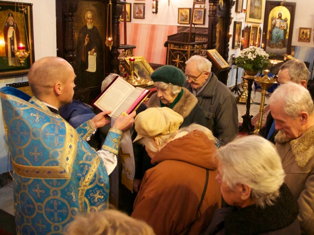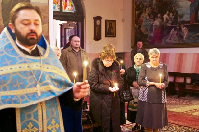 Każda pierwsza środa miesiąca w parafii św. Jana Klimaka jest dniem wyjątkowym. Wtedy w naszej cerkwi na Świętej Liturgii zbierają się Seniorzy, dając swoją postawą i obecnością świadectwo głębokiej i świadomej wiary, jak stateczne drzewa, przynoszące piękną jesienną porą obfite owoce zroszonego trudami życia. Tak też dziś cerkiew wypełniła śpiewana modlitwa chóru Seniorów pod kierunkiem pana Bogdana Kuźmiuka, towarzysząc i odpowiadając na płynące z ołtarza modły i wezwania celebrującego Świętą Liturgię ks. Piotra Rajeckiego. W sposób doskonały łącząc się z Chrystusem w Sakramencie Eucharystii, zebrani oddali cześć i chwałę Jego Przenajświętszej Matce podczas molebna. Zaś poprowadzona przez Ks. Piotr Kosińskiego modlitwa za tych, którzy spoczęli w Panu, stała się wyrazem prawdziwej chrześcijańskiej miłości, która pokonuje czas i przestrzeń, a nawet śmierć.