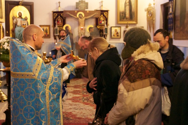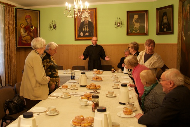 Jak zawsze gościnny dom parafialny po cerkiewnych modlitwach zebrał wszystkich obecnych na agapę. Spotkanie stało się dobrą okazją do dyskusji na temat wyzwań współczesnego świata. Niejako odpowiedzią na nurtujące wszystkich pytania stała się zaśpiewana na propozycję p. Bogdana Kuźmiuka pieśń „Научи меня Боже смириться, и на Крест помоги не роптать, а на волю Твою положиться, от Тебя себе помощи ждать”(Daj mi Boże przed Tobą ukorzyć, pomóż mi nie narzekać na krzyż, tylko Twej świętej woli się poddać, boś pomocą jedyną mą Tyś.)