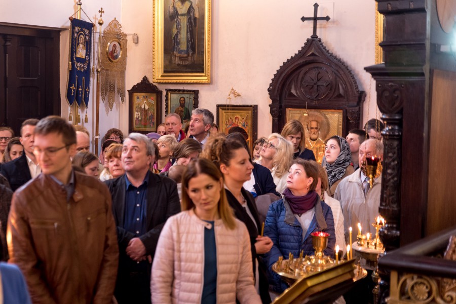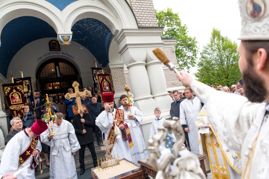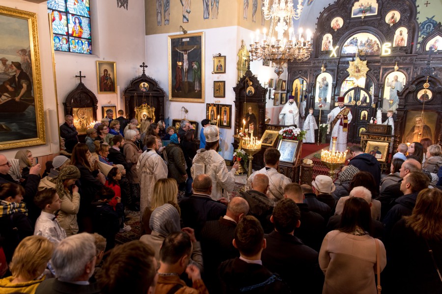 Przed Liturgią u wrót świątyni na Jego Ekscelencję czekały dzieci z punktu katechetycznego, które w języku polskim i ukraińskim przywitały biskupa, wyrażając swą czystą, dziecięcą radość z możliwości wspólnej modlitwy. Podczas sprawowania św. Liturgii biskupowi Pawłowi towarzyszyli księża parafialni oraz duchowni, którzy przybyli z katedry św. Marii Magdaleny: ks. Michał Kaczor, hieromnich Piotr (Dawidziuk) i protodiakon Rościsław Gwizdak. Po odczytaniu fragmentu Ewangelii według św. Jana kazanie wygłosił władyka Paweł, w którym poruszył kilka kwestii dotyczących Niedzieli Antypaschy. Jego Ekscelencja zwrócił uwagę na osobę św. apostoła Tomasza, którego zazwyczaj kojarzy się z niedowiarstwem, z tym, że nie uwierzył w fakt zmartwychwstania Chrystusa od razu, lecz oczekiwał potwierdzenia tego faktu. Jednakże biskup zwrócił uwagę na to, co miało miejsce wcześniej, a co zostało opisane w Ewangelii Jana w rozdziale jedenastym (J 11,16). Gdy Chrystus powiedział uczniom o śmierci Łazarza, wówczas apostoł Tomasz jako jedyny spośród nich gorliwie zachęcał pozostałych do podążania za Chrystusem – „Chodźmy także i my, aby razem z Nim umrzeć”. Myśląc o apostole Tomaszu, głosił biskup, należy połączyć jego potrzebę weryfikacji, z głęboką miłością do Chrystusa, miłością, która przygotowana jest na śmierć. Dopiero wówczas dostrzeżemy tomaszową głębię wiary i miłości do Chrystusa, które oczekują potwierdzenia w miłości Zmatwychwstałego, bo miłość prawdziwa, to miłość wzajemna, czyli potwierdzona.