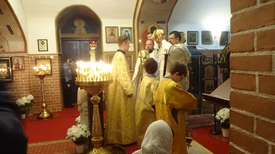W tym zaiste radosnym dniu sprawowane były naturalnie dwie Św. Liturgie: poranną, dedykowaną dla dzieci i młodzieży, o godzinie 8:30 w dolnej świątyni sprawowali wspólnie ks. Paweł Korobeinikov oraz ks. Dawid Romanowicz, w asyście ojca diakona Łukasza Leonkeiwicza. W czasie nabożeństwa śpiewał chór pod kierownictwem psalmisty Bogdana Kuźmiuka.