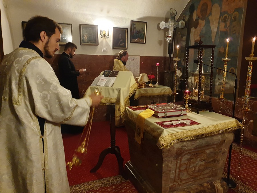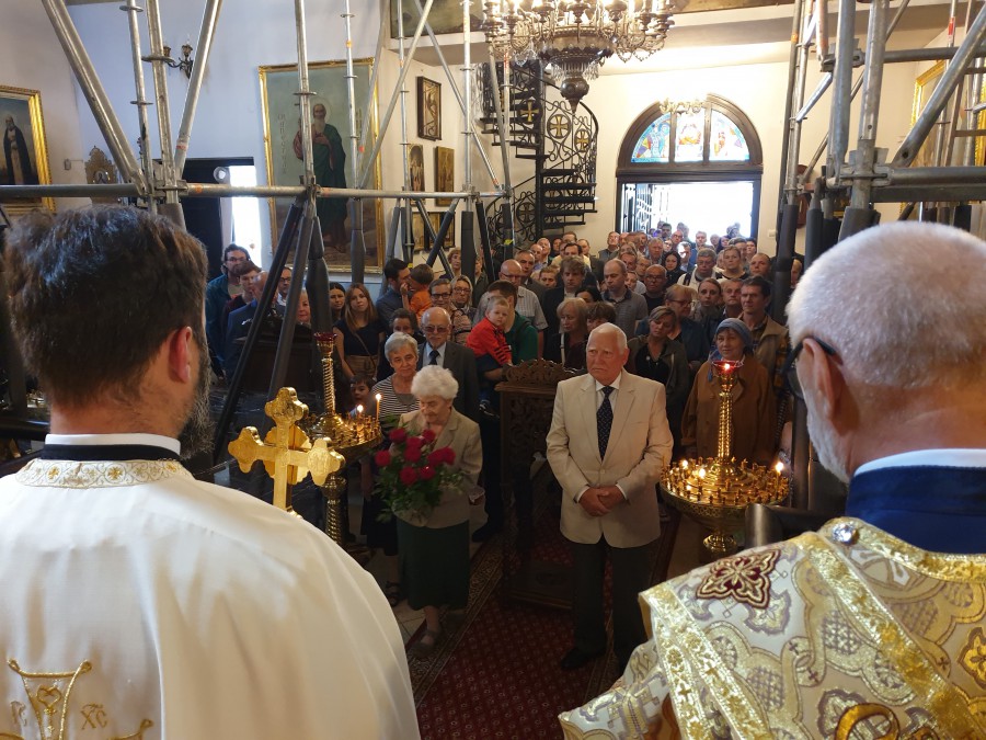 Nabożeństwu w górnej świątyni o godzinie 10:00 przewodniczył ks. mitrat Adam Misijuk w asyście ks. prot. Piotra Kosińskiego i diakona Łukasza Leonkiewicza oraz protodiakona Marka Zyc-Zyckowskiego. Podczas Liturgii św. List Apostolski odczytał lektor Andrzej Trofimiuk, zaś Ewangelię Niedzieli - diakon Łukasz. Z kazaniem zwrócił się do wiernych ks. proboszcz. Chórem dyrygował prof. Włodzimierz Wołosiuk.