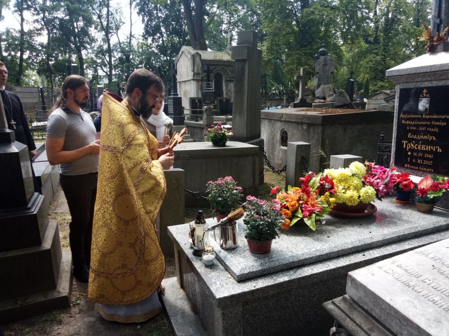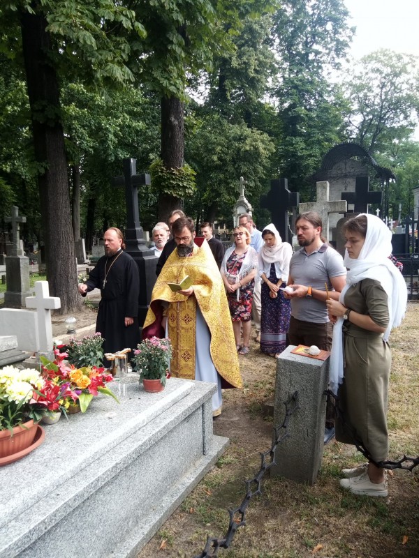 Po zakończeniu nabożeństw w cerkwi duchowieństwo i wierni udali się na grób ks. arcydiakona Włodzimierza Trusiewicza, aby go także modlitwenie pozdrowić z dniem niebiańskiego patrona. Przy grobie odłsużono panichidę.