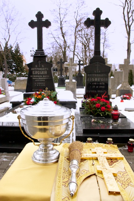 O godz. 10:00 Jego Eminencja Wielce Błogosławiony Sawa Metropolita Warszawski i całej Polski przybył na nasz wolski cmentarz prawosławny by pomodlić się przy grobie śp. Metropolity Dionizego.