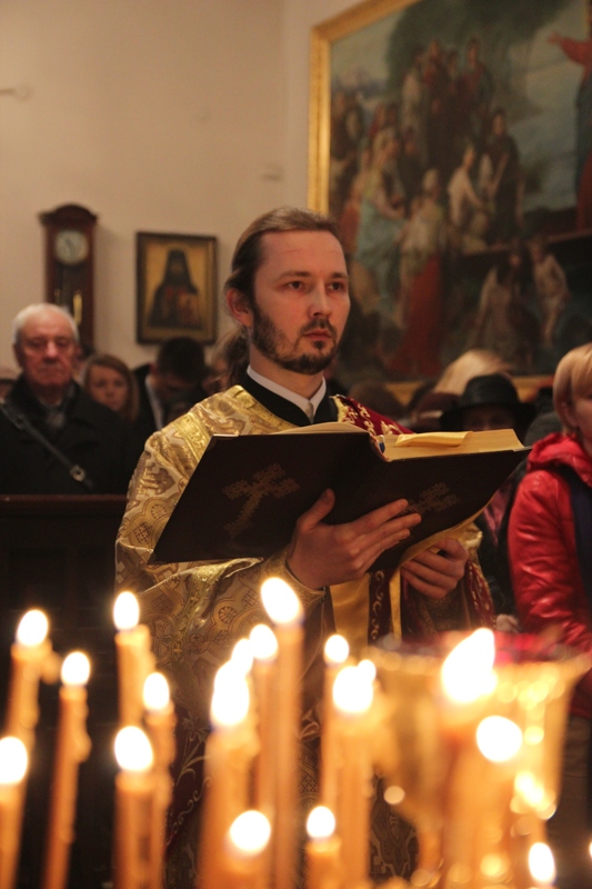 I my, po tych słowach metropolity, kontynuowaliśmy naszą modlitwę do Boga za pośrednictwem św. Jana Klimaka. Pełną możliwością realizacji tych trzech wezwań było przystąpienie do Świętej Eucharystii, z czego skorzystało wielu zgromadzonych. Jednakże, jeszcze przed tym szczytowym momentem uroczystości, czyli w trakcie zapriczastia, tradycyjnie ze swoim słowem do wiernych zwrócił się nasz proboszcz, który podziękował wszystkim – a szczególnie metropolicie Sawie – za przybycie, a chórowi za śpiew. Proboszcz wyjaśnił, że chór wprowadził nowe utwory, by dusze różnych ludzi modlitewnie radowały się. Dodam od siebie, że oprócz tego poczucia „u siebie” jest to też podkreślenie jedności Prawosławia w jego różnorodności, która jest, wbrew stereotypom, bardzo bogata.