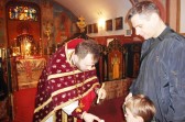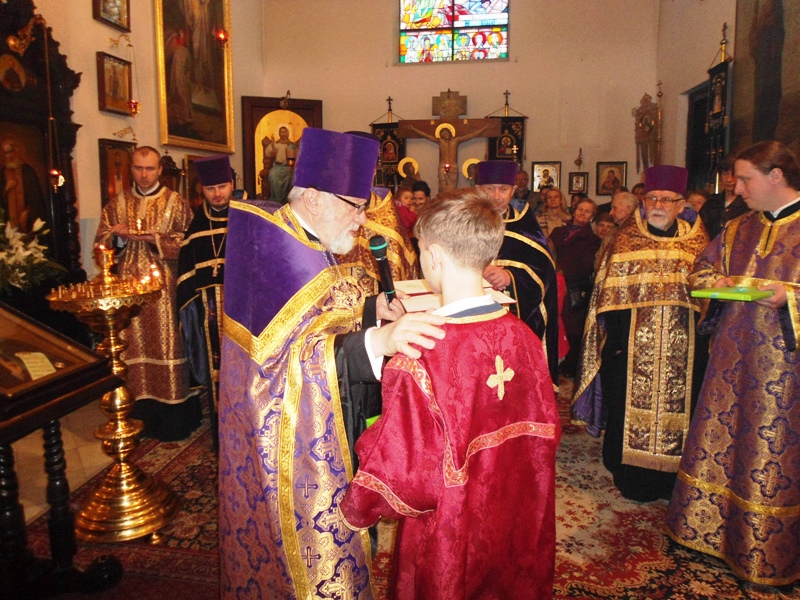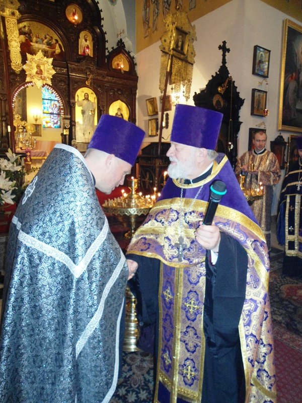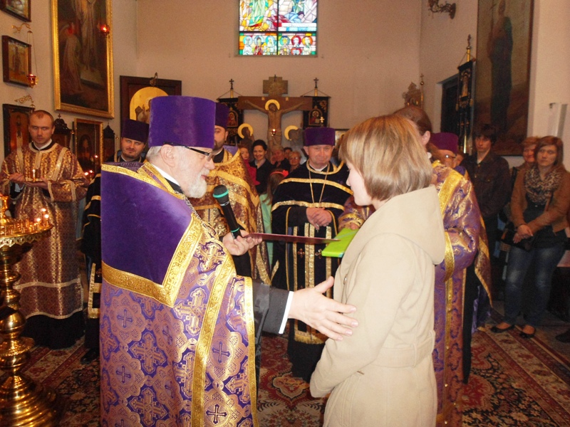 W trakcie nabożeństwa miało miejsce podniosłe wydarzenie. Ksiądz Proboszcz uroczyście wręczył kwiaty ks. Piotrowi Kosińskiemu oraz ks. Piotrowi Rajeckiemu, którzy zostali nagrodzeni przez sobór biskupów PAKP tytułem protojereja. Ksiądz Mikołaj wręczył także upominki dwóm naszym parafianom, którzy brali udział w Ogólnopolskim Turnieju Czytanie Tekstów Cerkiewnosłowiańskich W kategorii szkoły podstawowe, wyróżnienie otrzymał Włodzimierz Misijuk, a w kategorii szkoły gimnazjalne Zofia Pawlak zajęła 1 miejsce.