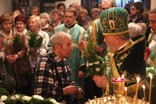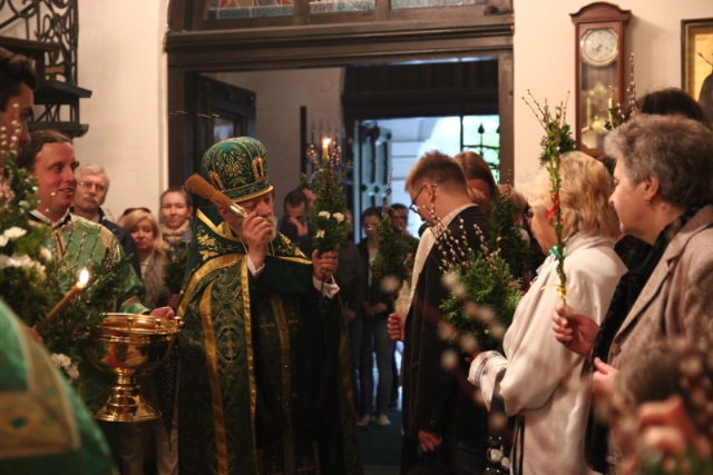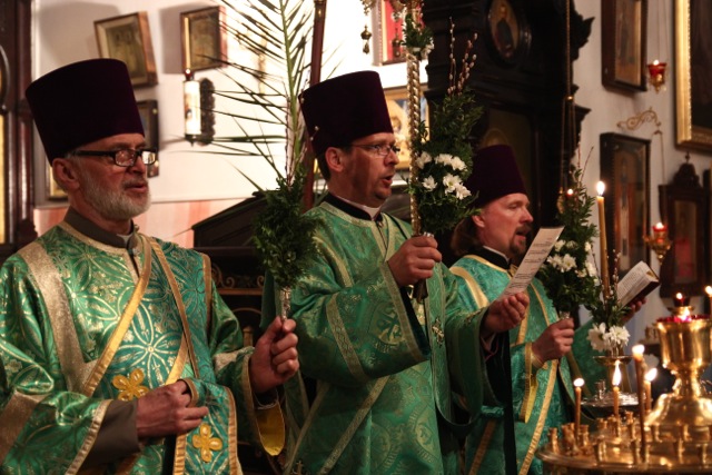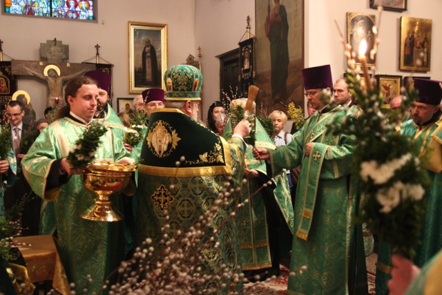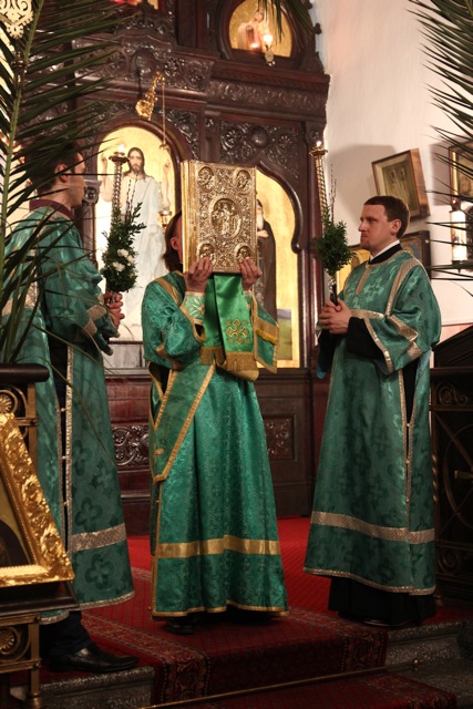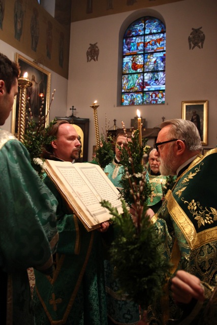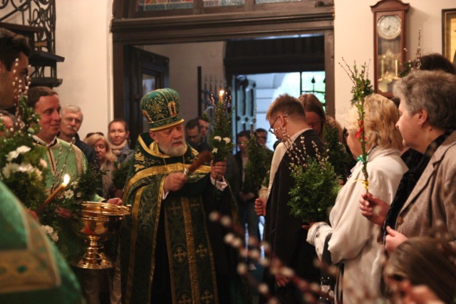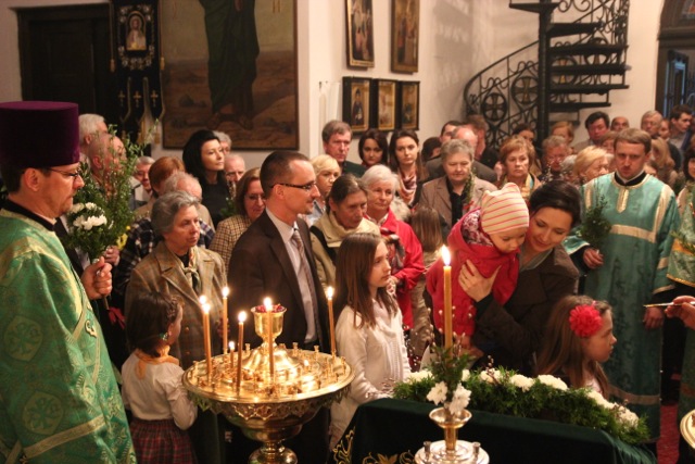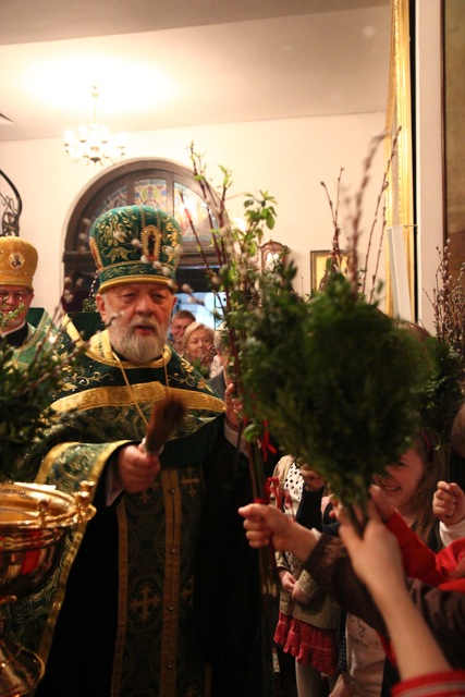 Zgromadziliśmy się na nim bardzo licznie, niejako odpowiadając na hymn wielokrotnie śpiewany w trakcie tej uroczystości: Dziś łaska Świętego Ducha nas zgromadziła (cs. „Dnies blahodat Swiataho Duha nas sobra”). Innymi co chwila rozlegającymi się słowami były: Hosanna! Błogosławiony, który idzie w Imię Pańskie!; te same, które 2000 lat temu wykrzykiwali Hebrajczycy witający Chrystusa w Jerozolimie, z tymże że teraz zabrzmiały w wykonaniu naszego parafialnego chóru, i w naszych duszach. W rękach trzymaliśmy palmy – znak zwycięstwa nad śmiercią – również tak samo, jak wtedy. Ich poświęcenie dokonało się tuż po odczytaniu Ewangelii tego święta. Proboszcz, przechodząc przez całą cerkiew, dokładnie i obficie pokropił święconą wodą nie tylko palmy, ale także i trzymających je ludzi.