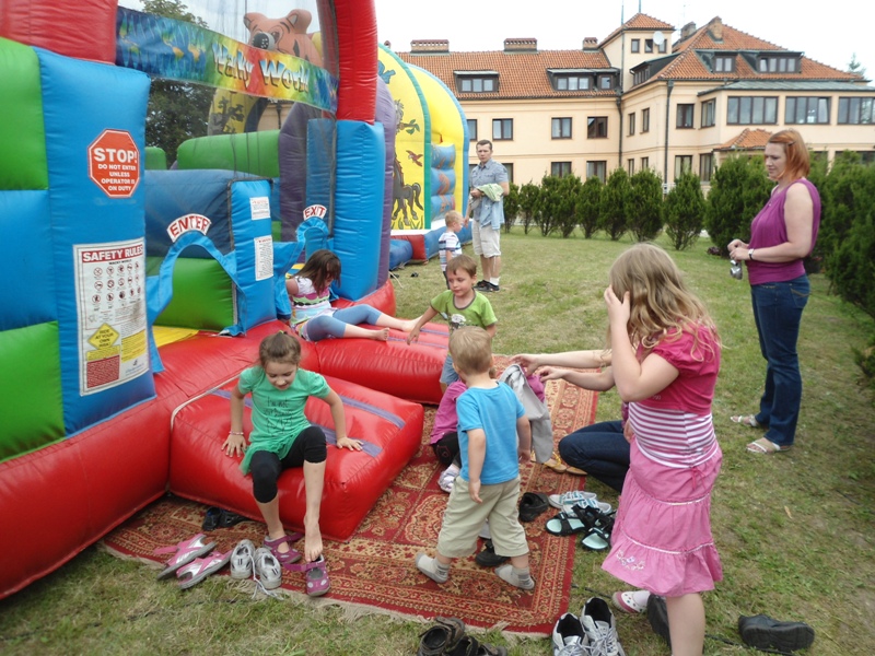 Chętne do gry były głównie starsze dzieci, choć niektórzy rodzice uratowali honor starszych generacji. Dla młodszych przygotowano niespodziankę – dmuchany zamek i trampolinę. Taka atrakcja dała odetchnąć rodzicom i pozwoliła im integrować się.