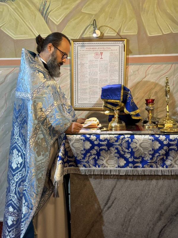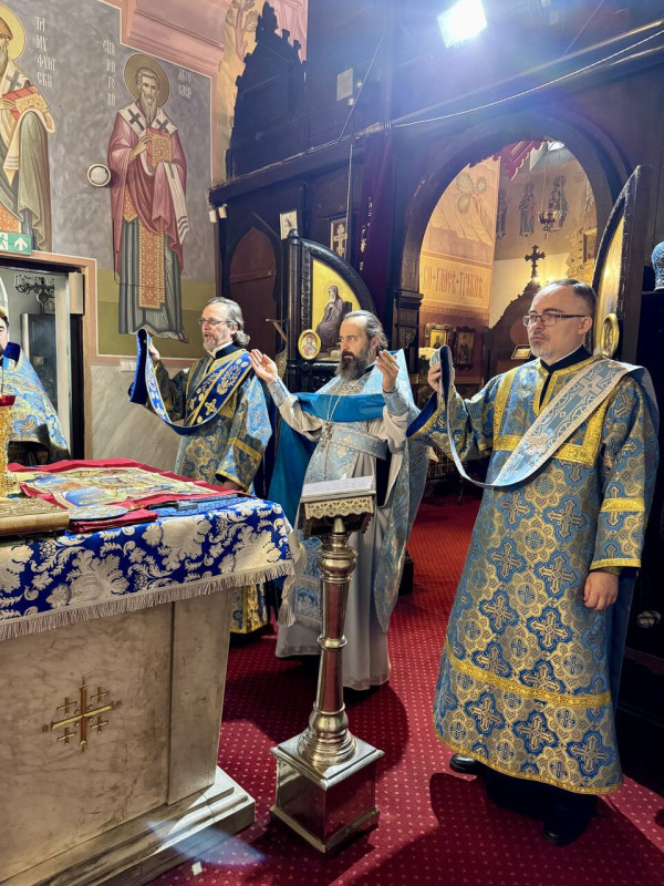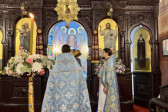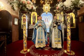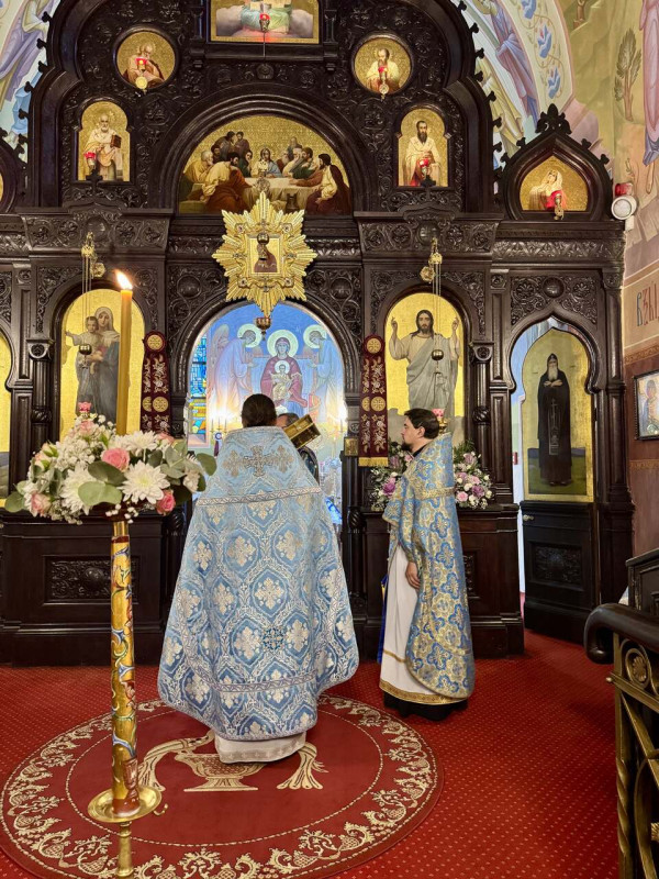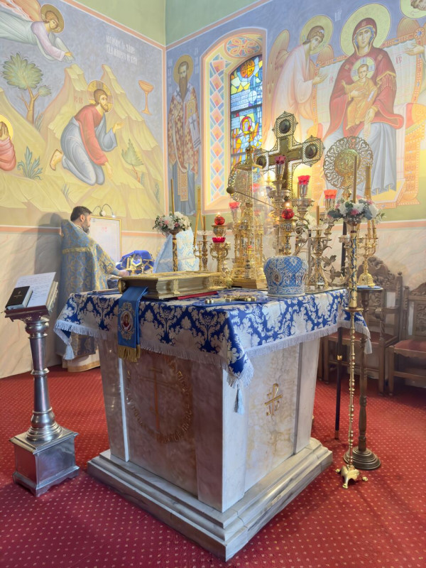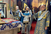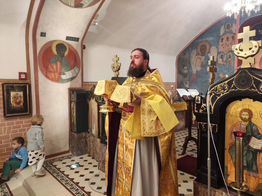 W naszej parafii w ten jesienny poranek odbyły się 3 Boskie Liturgie: o godz. 7.00, 8.30 oraz 10.00. Po głównej służbie duchowni wyszli na środek świątyni pokłonić się Relikwi szaty Przenajświętszej Bogurodzicy, która zawitała do naszej parafii z Włoch. Na koniec proboszcz, ks. Adam Misijuk pozdrowił wszystkich zebranych oraz zachęcił, aby chwilę pozostać i przedstawić swe troski, kłopoty , radości Matce Bożej.