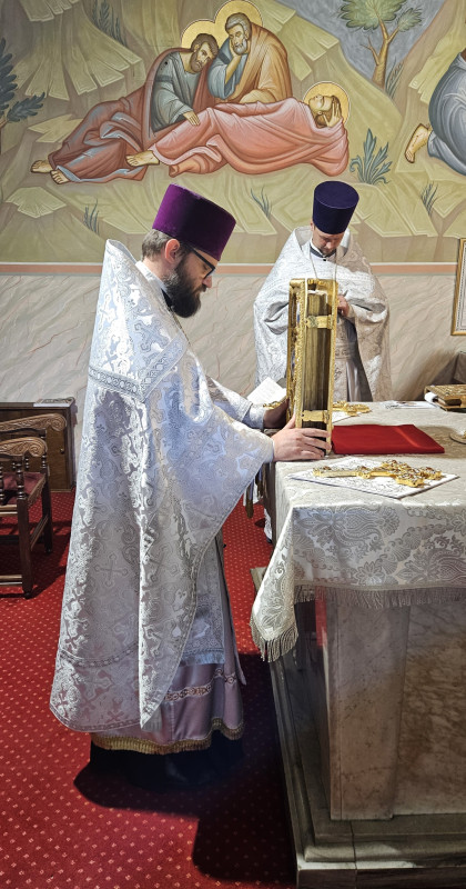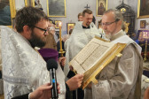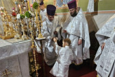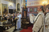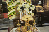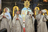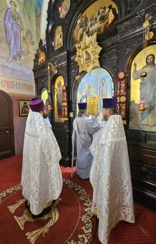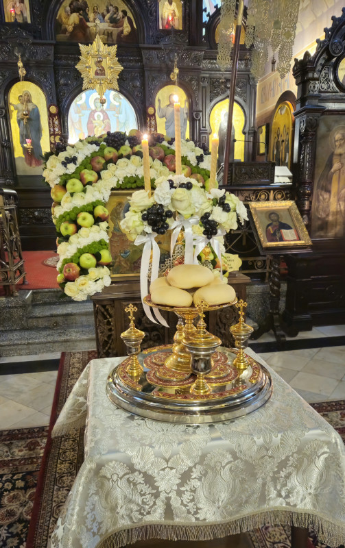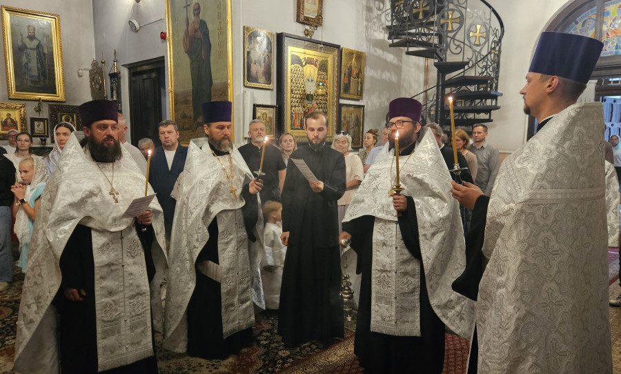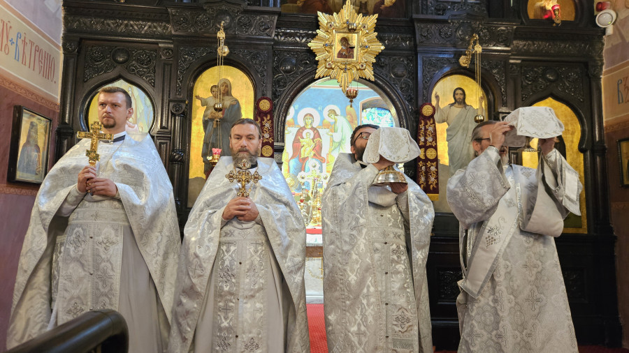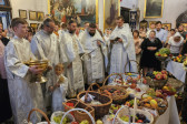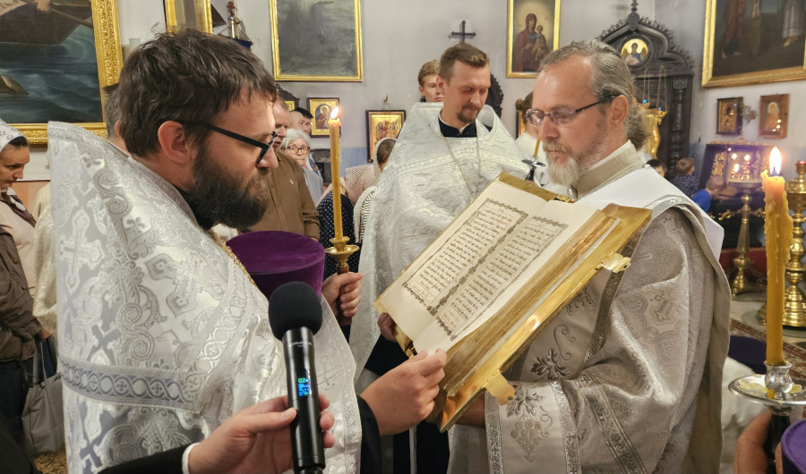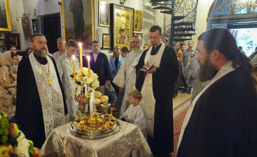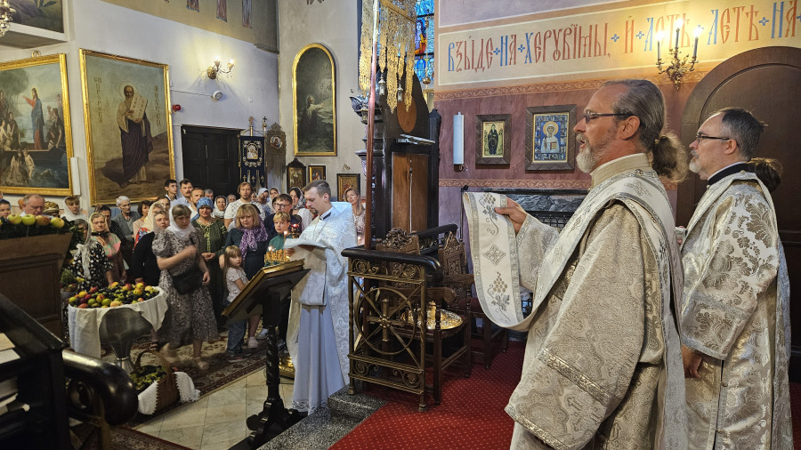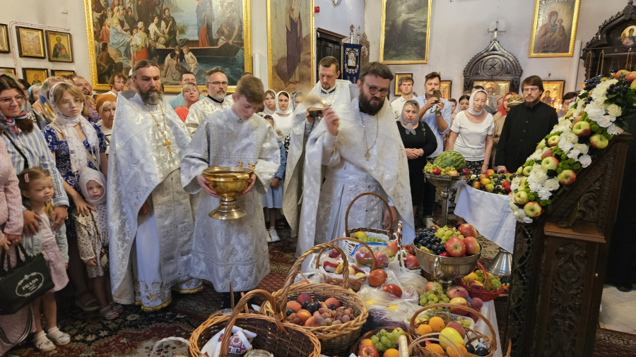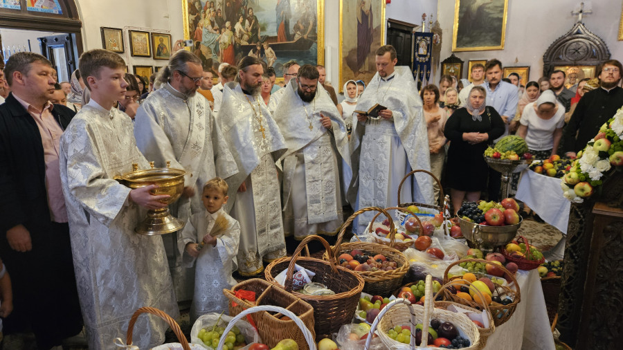 W naszej parafii radość święta rozpoczęła się od całonocnego czuwania w piątek (18.08.2025 r.) o godz. 17.00. Następnego dnia w świąteczny poranek odbyły się Boskie Liturgie o godz. 7.00 oraz 9.00. Po służbie duchodni wyszli na środek świątyni i święcili owoce. Czyni się to nie tylko dlatego, że w tym czasie dojrzewają owoce, ale też dlatego, iż tu właśnie znajduje się związek z odrodzeniem stworzenia. Przypominają one zniszczone rajskie szczęście, a z drugiej strony – pocieszają nas obietnicą, że i w przyszłym życiu będzie nieopisana rajska słodycz.