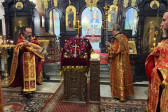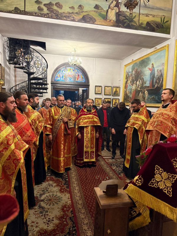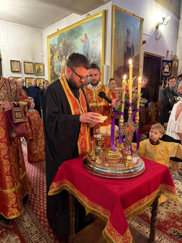 W sam dzień święta (27.09.2025 r.) odbyły się dwie Boskie Liturgie: o godz. 24.00 oraz 9.00. Po głównej Liturgii wszyscy duchowni wyszli na środek świątyni, aby pokłonić się Krzyżowi, który pozostanie na anałojczyku przez 8 dni - do dnia zakończenia święta. Na koniec ks. proboszcz Adam Misijuk w imieniu duchowieństwa, Rady Parafialnej i wszystkich wiernych złożył serdeczne życzenia urodzinowe p. Konstantemu Sterlingow, zasłużonemu parafianinowi, wieloletniemu Członkowi Rady Parafialnej.