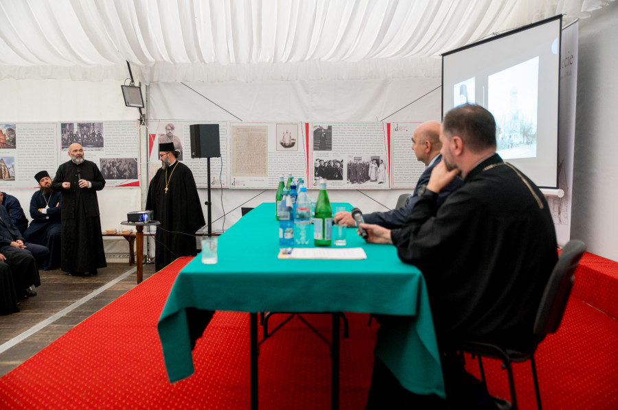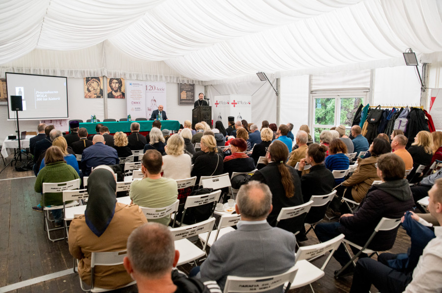 Następnie wszyscy udali się do namiotu, gdzie po śniadaniu, rozpoczęła się konferencja naukowa. Modaratorem wydarzenia był ks. dr Tomasz Stempa, który zapowiedział prelegenta, prof. zw. dr hab. Antoniego Mironowicza z wykładem pt. "Uniatyzm w przeszłości i dziś." Później głos zabrał dk dr Andrzej Golimont z prezentacją pt. "Prawosławna Wola - 300 lat historii."