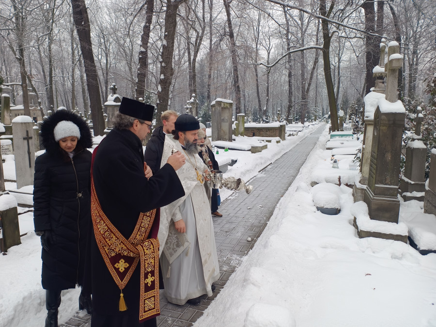 Następnie ks. Adam Misijuk wraz z protodiakonem Jerzym Dmitrukiem odsłużyli panichidy przy grobach śp. metr. Bazylego (Doroszkiewicza) oraz Bazylego Piwnika, archonta polskiej Cerkwi.
