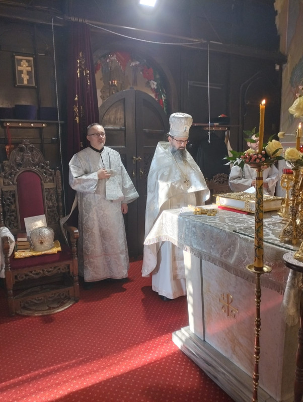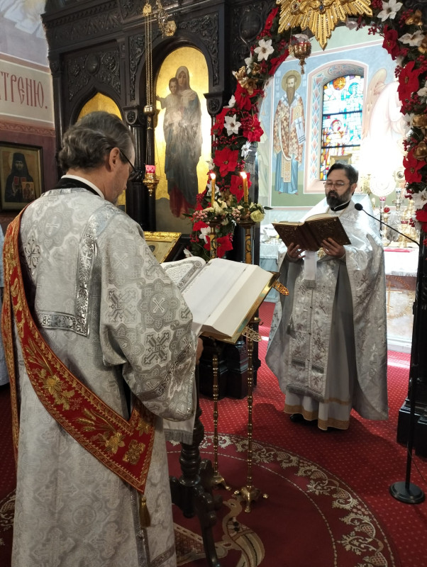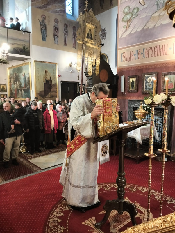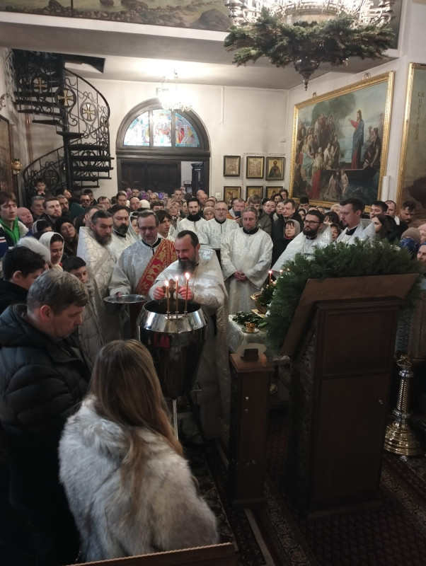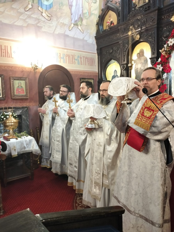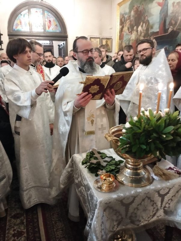 W naszej świątyni odbyły się w ten niedzielny poranek 3 Boskie Liturgie: o godz. 7.00, 8.30 oraz 10.00. Po głównej Liturgii wszyscy duchowni wyszli na środek cerkwi, aby dokonać obrzędu Wielkiego Poświęcenia Wody w święto Teofanii. Na zakończenie proboszcz parafii ks. Adam Misijuk, pozdrowił wszystkich zebranych oraz zachęcił, aby każdy zaczernął święconej wody i zaniósł radość święta do swych domostw.