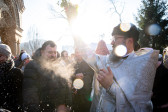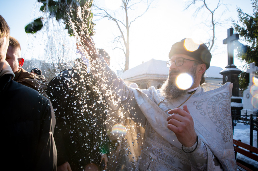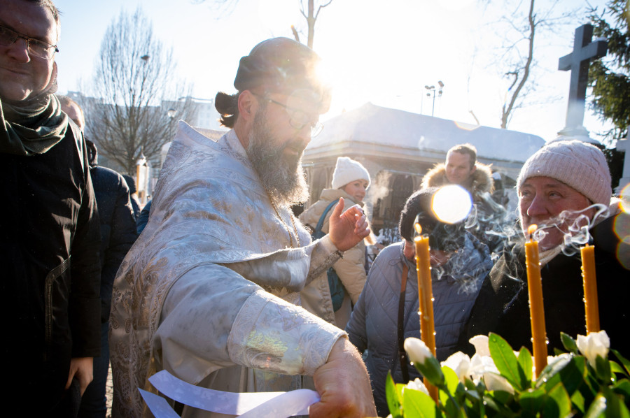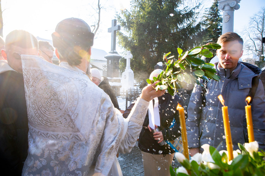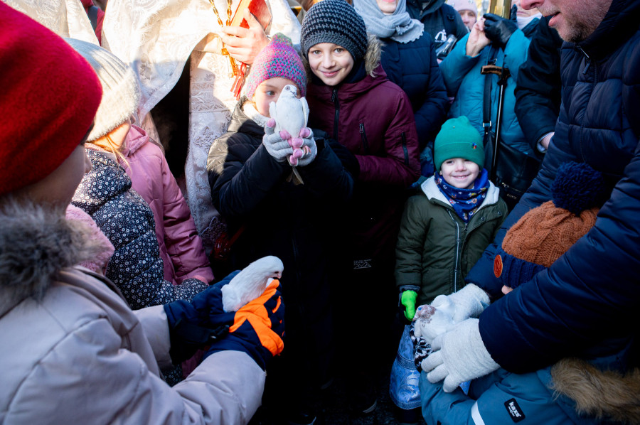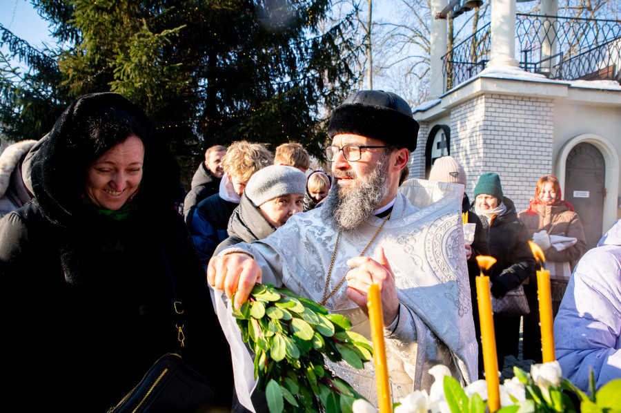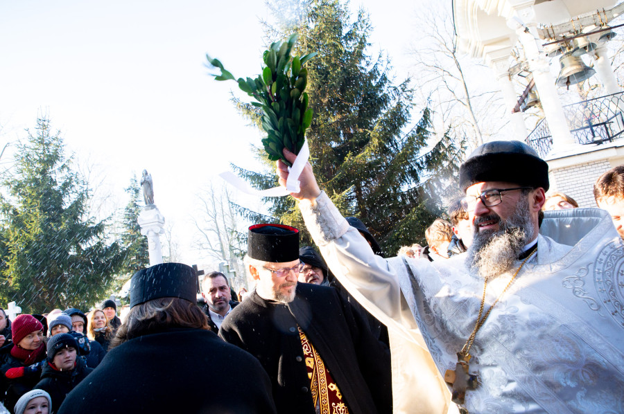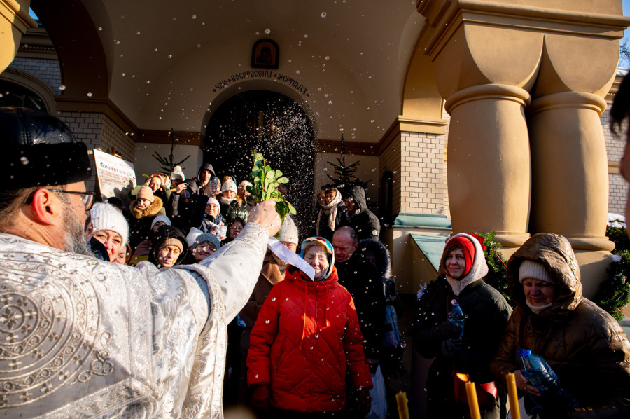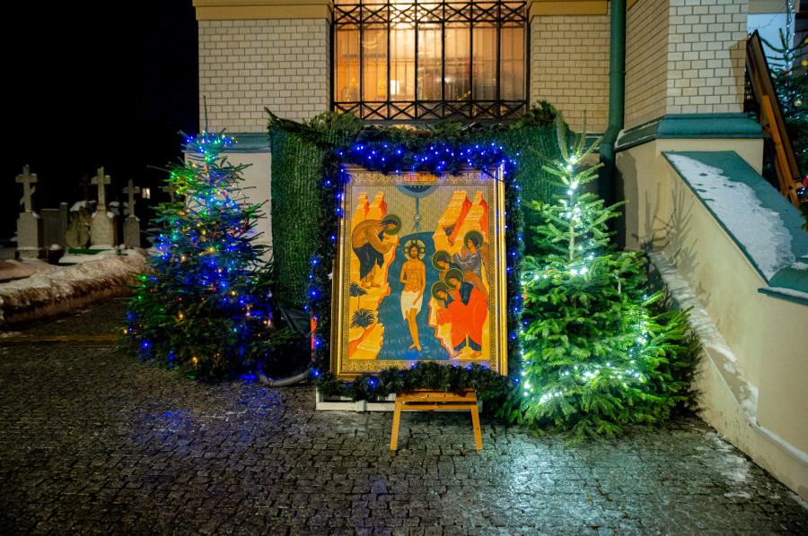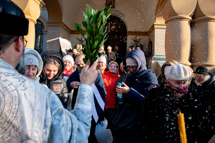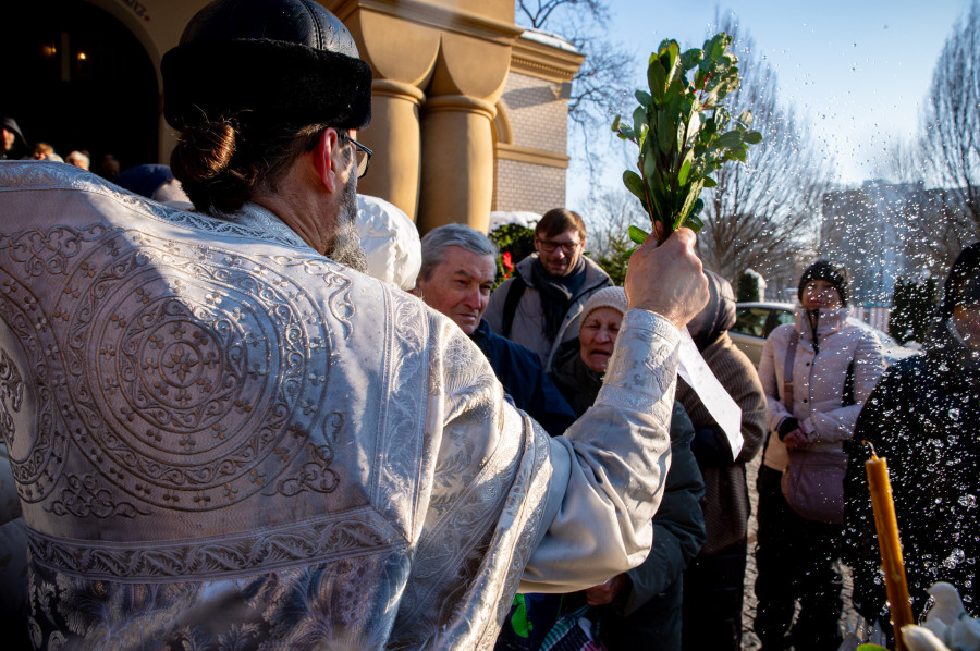 W naszej parafii świętowanie rozpoczęliśmy w niedzielę (18.01.2026 r.), od całonocnego czuwania o godz. 17.00. Następnego dnia odbyły się 2 świąteczne liturgie: o godz. 7.00 oraz 9.00. Bezpośrednio po liturgii miało miejsce Wielkie poświęcenie wody na podwórzu przed cerkwią. Przy trzykrotnym pogrążaniu krzyża w zbiorniku z wodą i śpiewie troparionu Epifanii zostały wypuszczone w niebo białe gołąbki – symbol czystości i obecności Ducha Świętego w momencie chrztu Chrystusa w Jordanie.