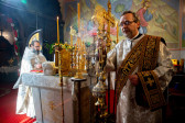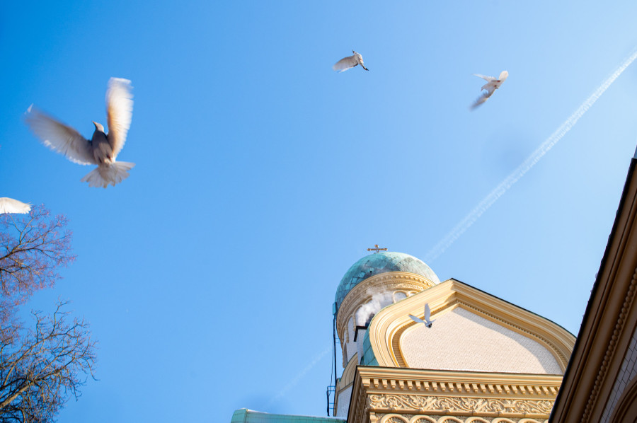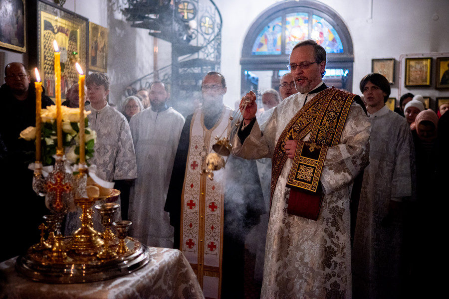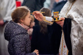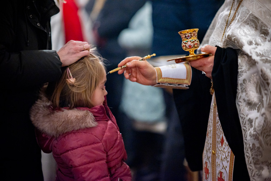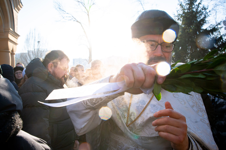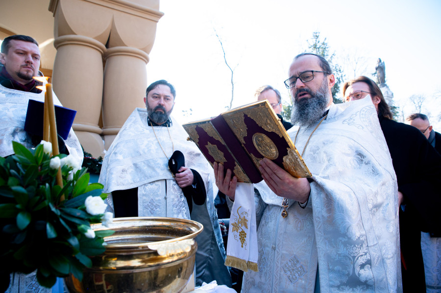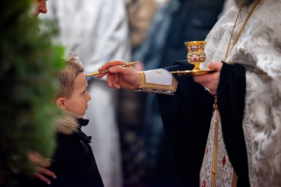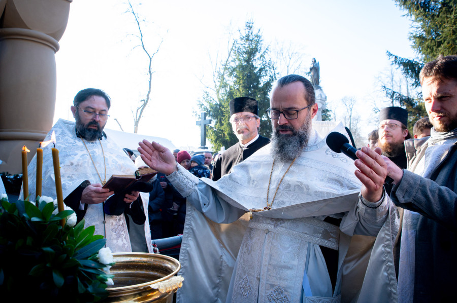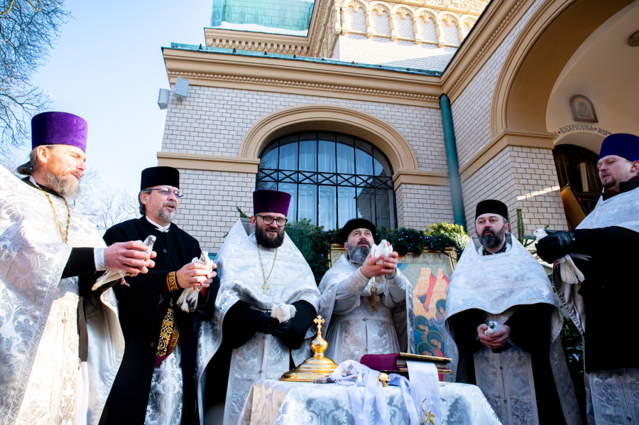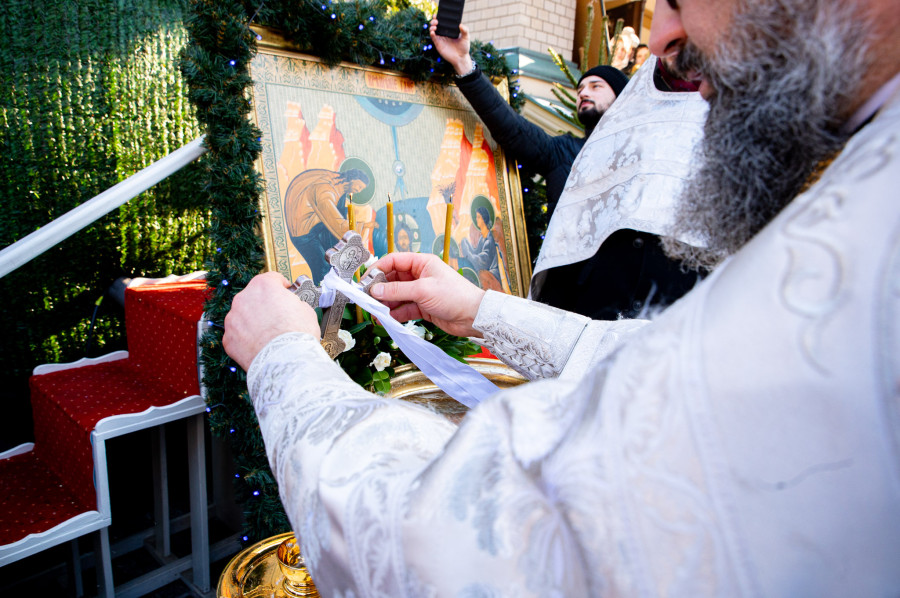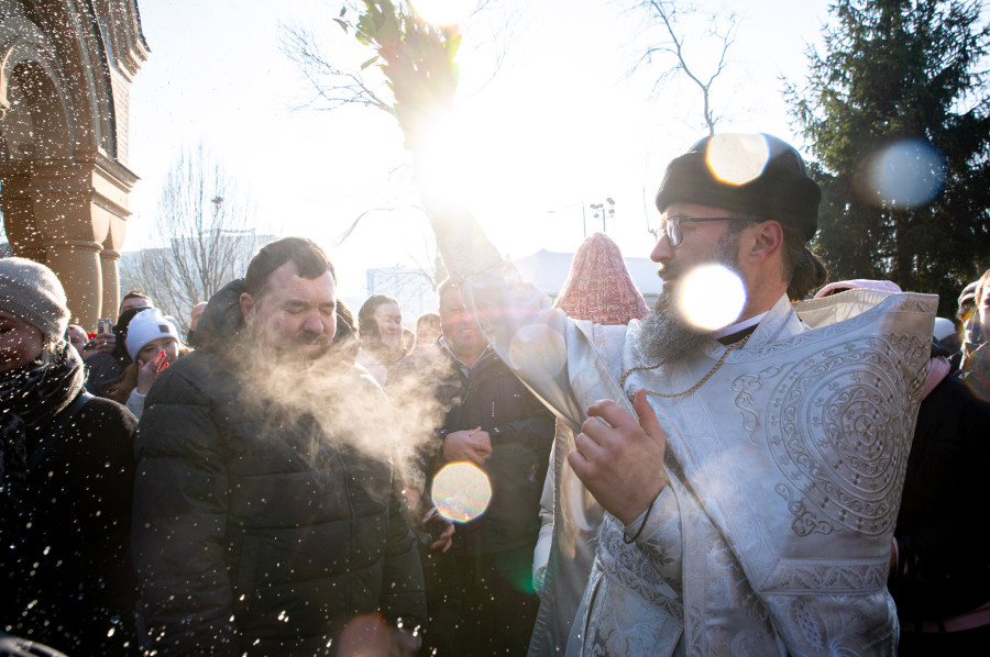 W naszej parafii świętowanie rozpoczęliśmy w niedzielę (18.01.2026 r.), od całonocnego czuwania o godz. 17.00. Następnego dnia odbyły się 2 świąteczne liturgie: o godz. 7.00 oraz 9.00. Bezpośrednio po liturgii miało miejsce Wielkie poświęcenie wody na podwórzu przed cerkwią. Przy trzykrotnym pogrążaniu krzyża w zbiorniku z wodą i śpiewie troparionu Epifanii zostały wypuszczone w niebo białe gołąbki – symbol czystości i obecności Ducha Świętego w momencie chrztu Chrystusa w Jordanie.