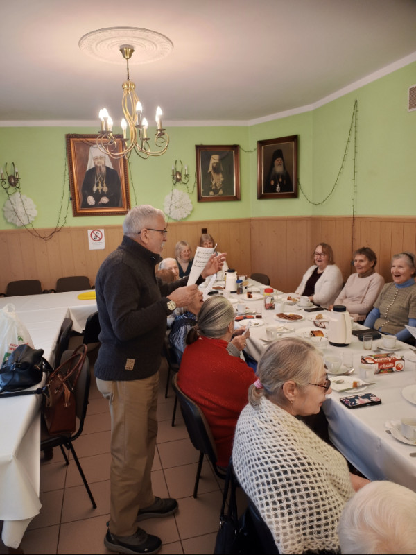 4. lutego 2026 r., w środę, odbyło się kolejne spotkanie seniorów przy Prawosławnej Parafii św. Jana Klimaka na Woli. Rozpoczęliśmy od Boskiej Liturgii o godz. 9.00. Następnie wszyscy udali się do domu parafialnego, gdzie opiekun grupy seniorów, ks. Remigiusz Sosnowy, przedstawił wykład pt. "Stworzenie i upadek pierwszych ludzi."