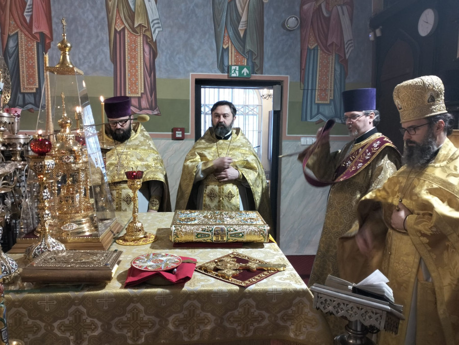 W naszej parafii w ten niedzielny poranek odbyły się trzy Boskie Liturgie: o godz. 7.00, 8.30 oraz 10.00. Po głównej Liturgii duchowni pokłonili się relikwiom św. Bazylego Martysza, zaś proboszcz parafii ks. Adam Misijuk pozdrowił wszystkich i życzył błogosławionej niedzieli.