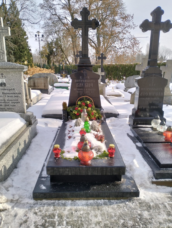Dnia 11 lutego 2025 roku, w rocznicę śmierci metropolity Bazylego, na Cmentarzu Prawosławnym przy Parafii św. Jana Klimaka na Woli. ks. Remigiusz Sosnowy oraz ks. Dawid Martyniuk w asyście protod. Jerzego Dmitruka odprawili panichidę nad grobem ś.p. Władyki.