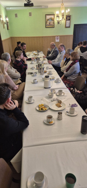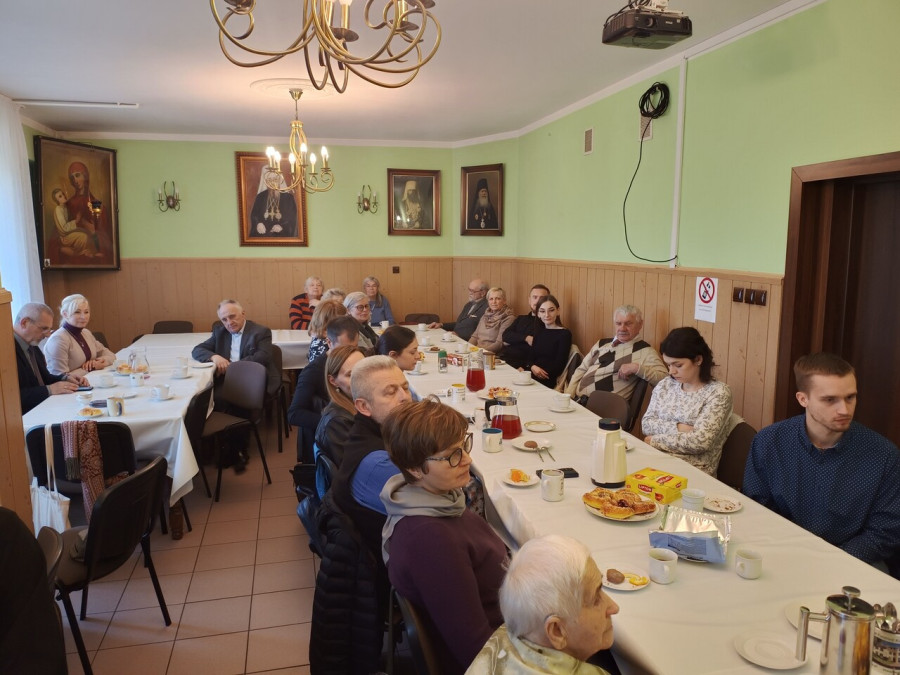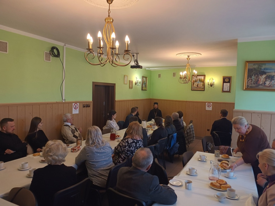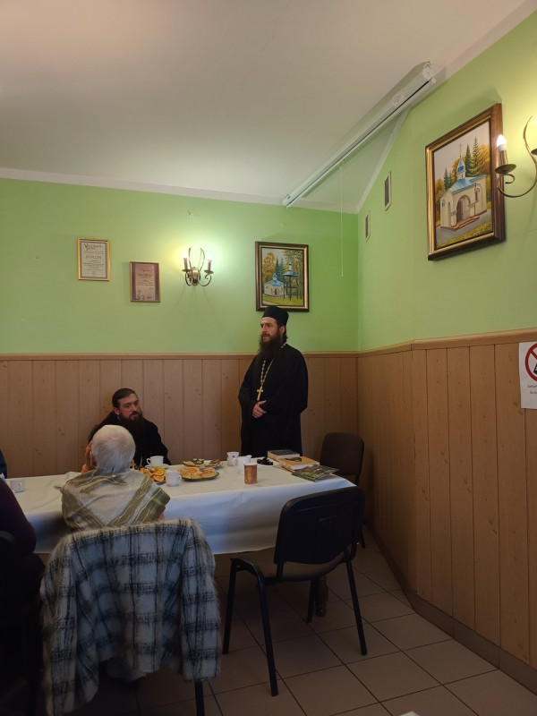 W niedzielę, 29.03.2026 r., po drugiej i trzeciej Boskiej Liturgii, w domu parafialnym odbyły się spotkania z ih. Porfiriuszem (Orzechowskim) z Monasteru św. Dymitra Sołuńskiego w Sakach. Na pierwszy wykład przyszli rodzice z naszego Punktu Katechetycznego, zaś na drugi wszyscy zainteresowani wierni. O. Porfiriusz przedstawił teoretyczne i praktyczne aspekty Wielkiego Postu, czemu mamy pościć, jakie są owoce postu, jakie postawy powinniśmy przyjmować w tym okresie, jak ubogacić swoje życie modlitewne, jaką w tym rolę może odgrywać Akatyst do Zwiastowania Przenajświętszej Bogurodzicy, Liturgia Uprzednio Poświęconych Darów oraz Modlitwa Jezusowa. Na koniec nastąpił ważny moment, gdy o. Porfiriusz odmówił 3 razy głośno Modlitwę Jezusową oraz przekazując czotki, poprosił, aby każdy z zebranych także powiedział modlitwę.
