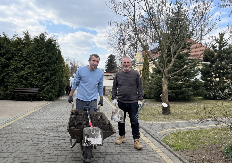 I nie byłoby może w tym nic wyjątkowego, gdyby nie fakt, że akurat Ci pielgrzymi zawsze przyjeżdżają ze swoim duchowym opiekunem - proboszczem parafii, ojcem Adamem Misiejukiem, który na naszym monasterskim podwórku trudzi się na równi ze wszystkimi, ale jak sam powtarza, bez dwóch filarów każdego z tych wyjazdów - Pani Ireny i Pana Grzegorza, z działającego przy parafii stowarzyszenia "Wierni Tradycji Pokoleń", nic by nie było.