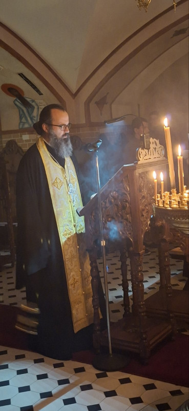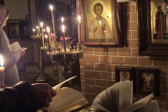 Jest już głęboka noc, dopalają świece, które troskliwe ręce wymieniają w świecznikach. Ci, którzy przeczytali swoje katyzmy, siadają w stasidiach i słuchają.