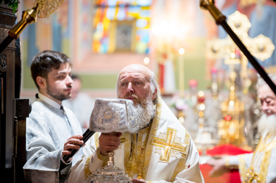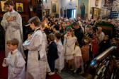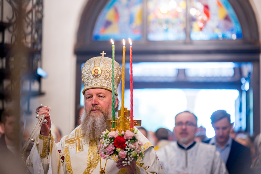 Świętowanie rozpoczęliśmy od całonocnego czuwania o godz. 17.00 w sobotę (18.04.2026 r.). Następnego dnia odbyły się 2 Boskie Liturgie: o godz. 7.00 oraz 9.00. Głównemu nabożeństwu przewodniczył Jego Eminencja Wielce Błogosławiony Sawa, Metropolita Warszawski i Całej Polski. Władykę przywitały dzieci, następnie u progu świątyni młodzież oraz reprezentanci Rady Parafialnej. To wielka radość, że Władyka jest w nami w tak ważnym dniu. Po Świętej Ewangelii, słowo do wiernych wygłosił o. Pantelejmon (Karczewski), który przybliżył znaczenie Antypaschy w rozumieniu semantycznym oraz teologicznym. Na zakończenie nabożeńśtwa J.E. metr. Sawa podkreślił jak ważna jest wiara w życiu każdego człowieka, i nie ma tak naprawdę ludzi niewierzących. Proboszcz wolskiej parafii, ks. Adam Misiujuk podziękował hierarchom za przewodnictwo w modlitwie oraz przykład wiary, a także wszystkim którzy trudzili się w przygotowaniu święta, Radzie Parafialnej, duchownym i wszystkim zebranym wiernym.