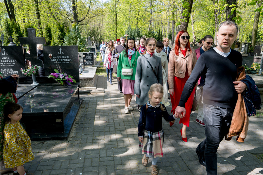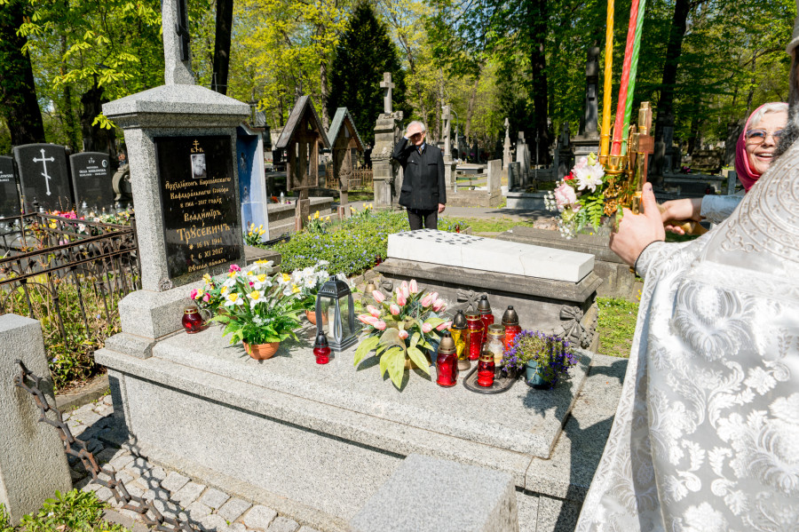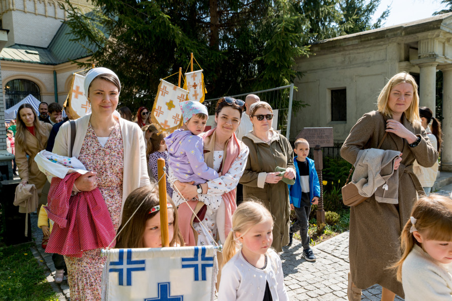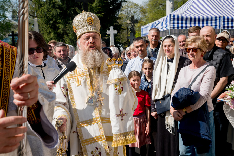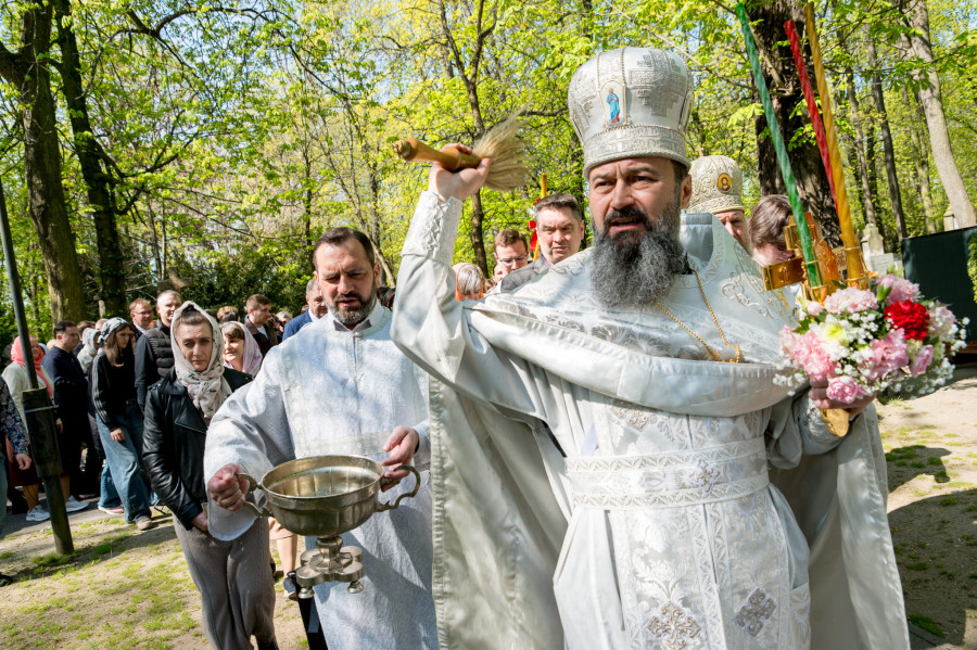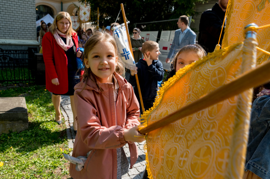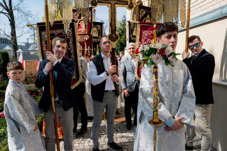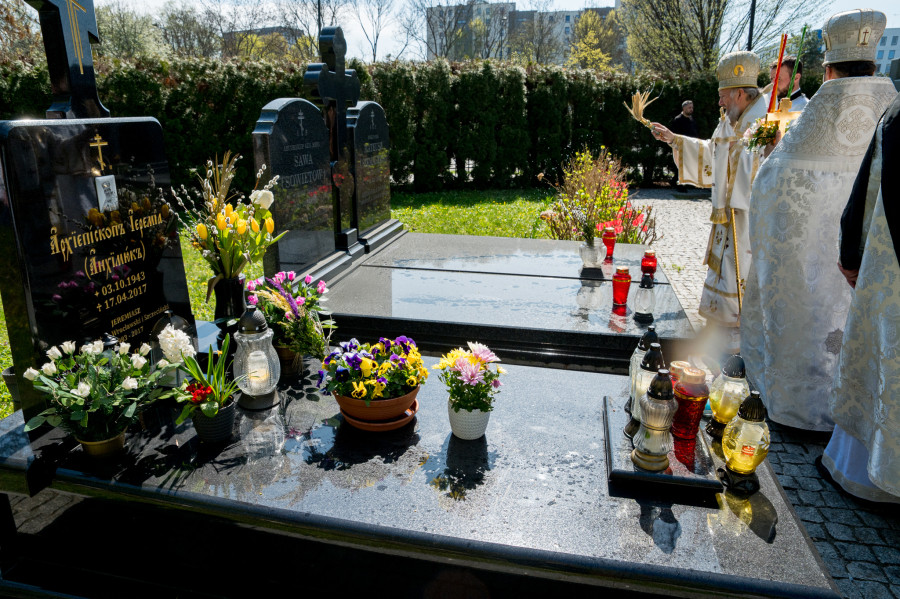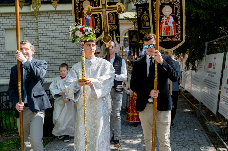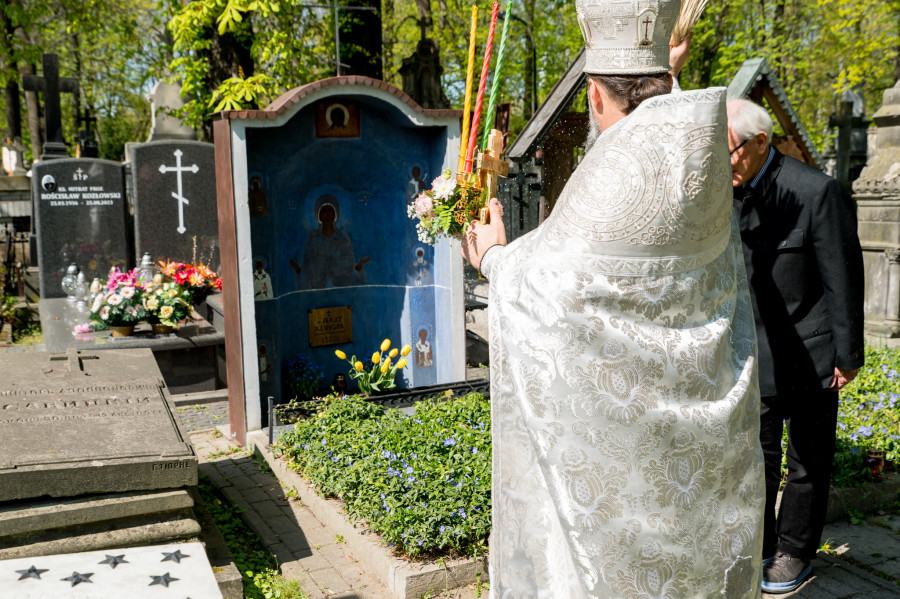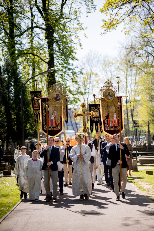 Następnie wszyscy udali się na panichidę przed świątynią oraz uroczystą procesję wokół cerkwi i wśród alejek cmentarza, podczas której dzieci głosiły fakt Zmartwychwstania Chrystusa niosąc dumnie znak krzyża na chorągwiach. Po procesji odbyła się agapa w domu parafialnym.