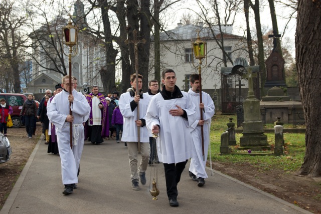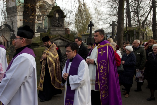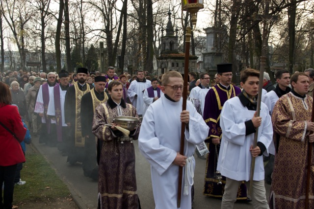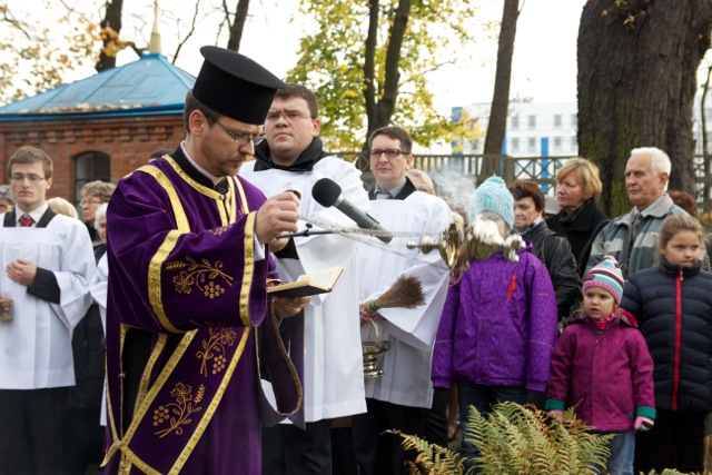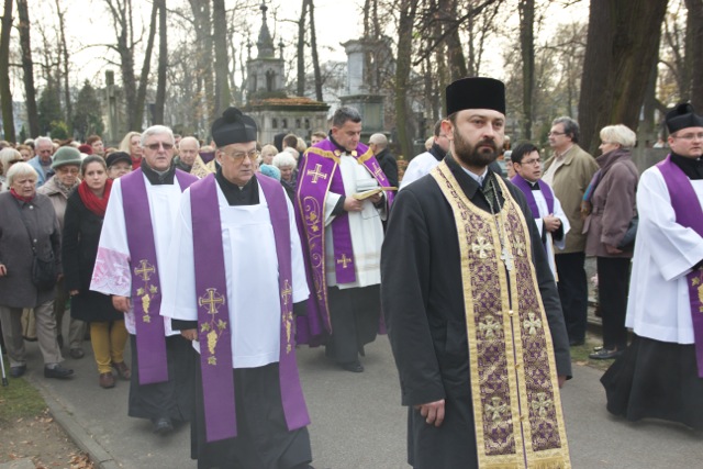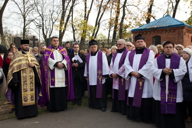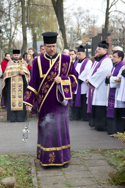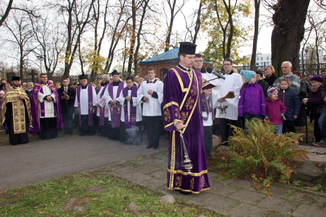 Na naszym Wolskim Prawosławnym Cmentarzu co roku staje się on momentem, gdy dzięki modlitwie przezwyciężamy różnice i przypominamy sobie, iż wszyscy jesteśmy dziećmi Jedynego Boga. I jak na takowych przystało, rozpoczęliśmy ten dzień Świętą Liturgią, której przewodniczył od lat związany z naszą parafią wieloletni Rektor Prawosławnego Seminarium Duchownego ks. mitrat Jan Sezonow w gronie zacnych gości: ks. prot. mitrata Rościsława Kozłowskiego, ks. prot. mitrata Michała Dudicza, ks. mitrata Henrika Paprockiego, ks. prot. Doroteusza Sawickiego, ks. Tomasza Stempy, ks. Michała Dmitruka oraz ks. diakona Andrzeja Dawidziuka, który na co dzień swoim pięknym i potężnym głosem upiększa nabożeństwa w Metropolitalnej Katedrze św. Marii Magdaleny. Ze strony naszej parafii byli obecni ks. Proboszcz mitrat. Mikołaj Lenczewski, ks. prot. Adam Misijuk, ks. prot. Piotr Kosiński, ks. protod Jerzy Dmitruk oraz ks. protod. Paweł Korobejnikow.