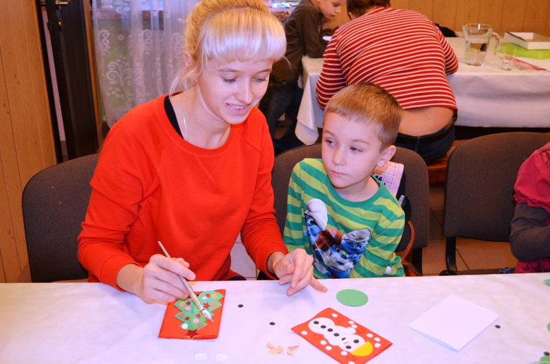 Wszyscy z wielkim zapałem przystąpili do pracy. Dzieci i młodzież wykonywała kartki świąteczne i ozdabiała świąteczne ozdoby choinkowe. W salach katechetycznych domu parafialnego zostały przygotowane niezbędne rozmaitości (papier, brokat, koraliki, farbki, bombki itp.) do dekorowania.