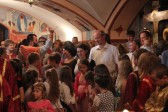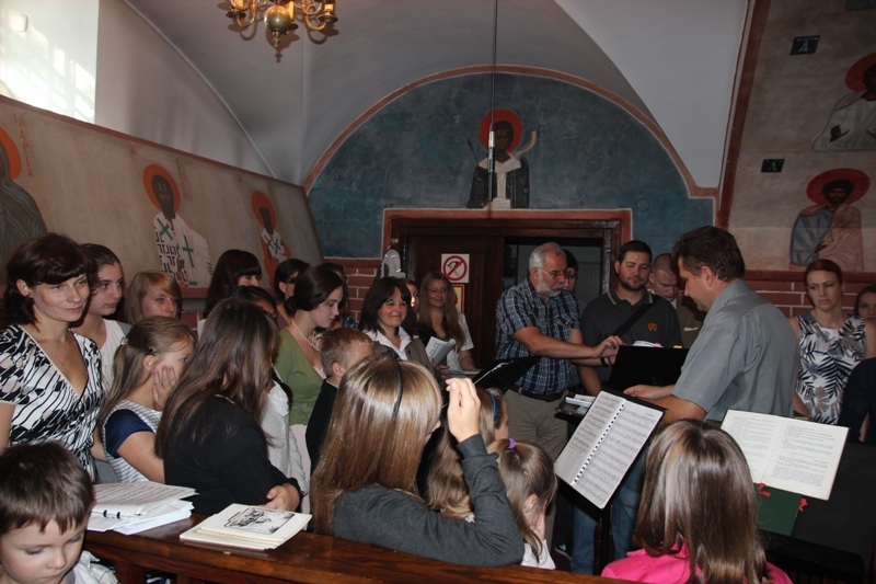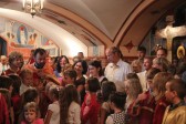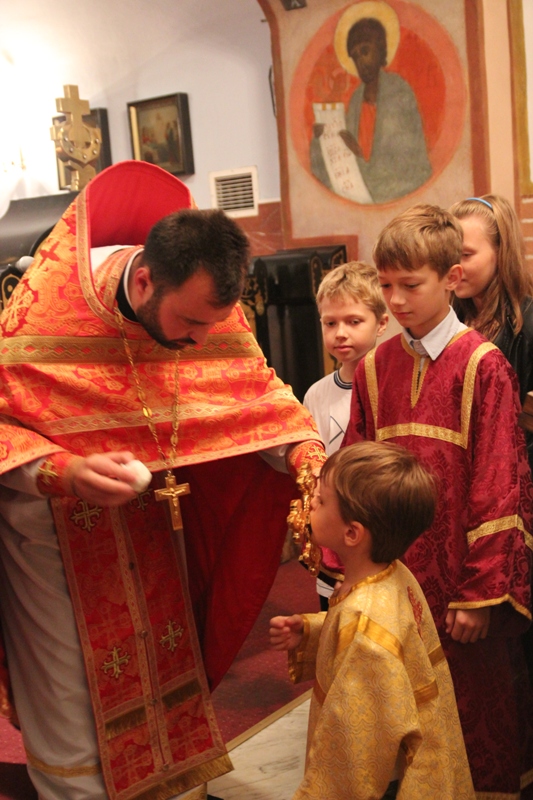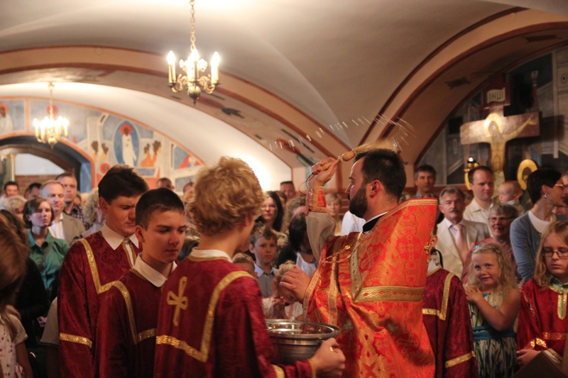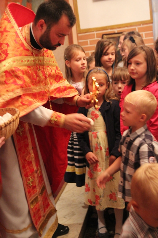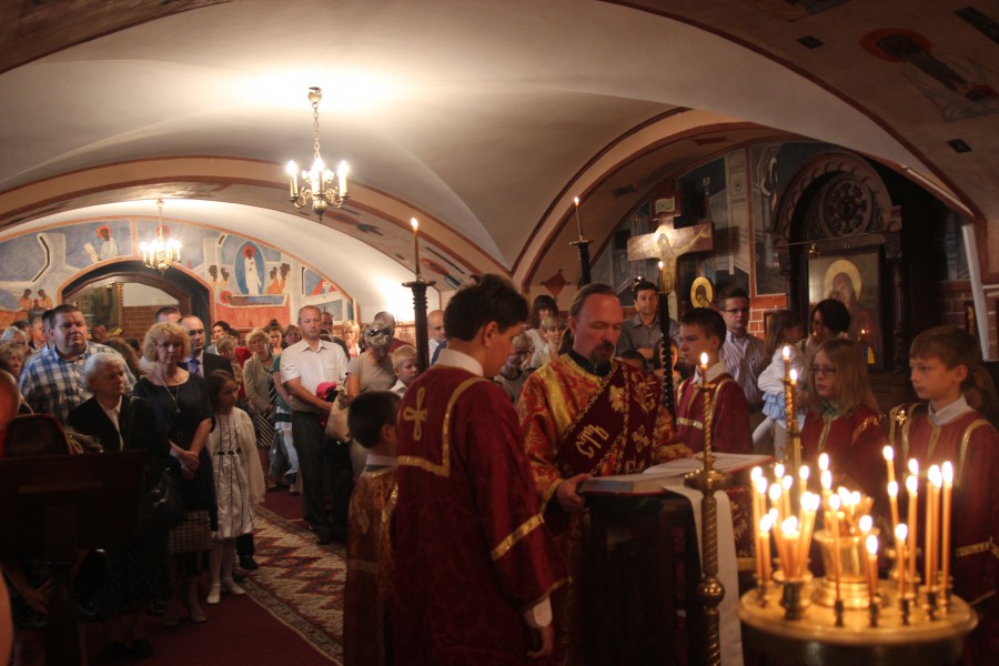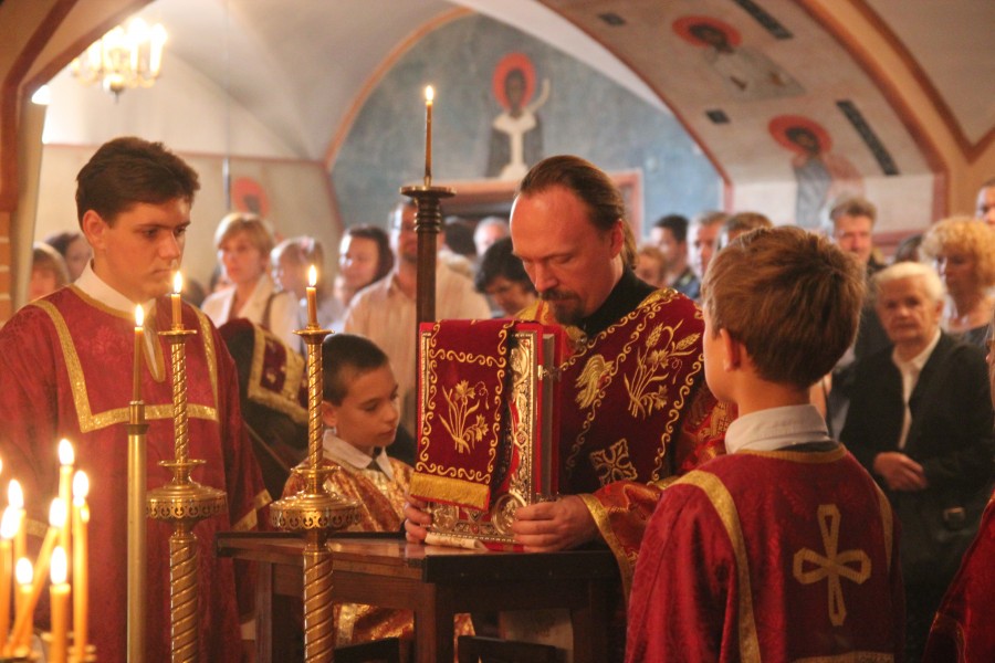 Uroczysta Boska Liturgia sprawowana była w dolnej cerkwi pod wezwaniem Św. Proroka Eliasza i Błogosławionego Hieronima ze Strydonu. Świętą Liturgię z molebnem sprawował ks. Adam Misijuk i ks. protodiakon Paweł Korobeinikov. Śpiewały chóry: młodzieżowy pod dyrygenturą lektora Bogdana Kuźmiuka oraz dziecięcy prowadzony przez matuszkę Dorotę Korobeinikov.