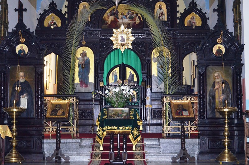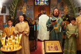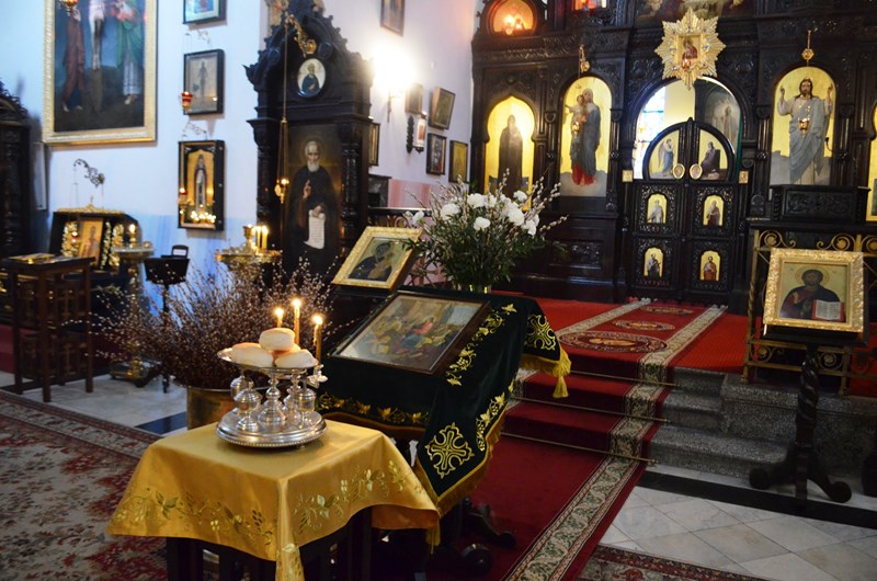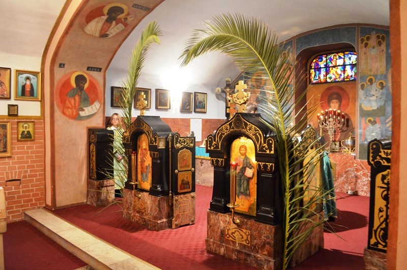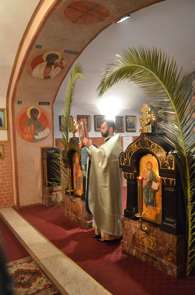 Wchodząc dziś do naszej świątyni, niezależnie dolnej czy górnej, nie sposób było nie zauważyć symbolu dzisiejszego święta, a mianowicie - ogromnych palmowych gałęzi, przywiezionych specjalnie z Grecji, aby upiększały one w tym radosnym dniu naszą cerkiew.