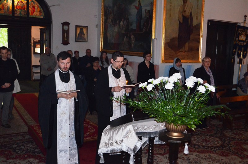 Dzisiejszą całonocne czuwanie w wigilię Niedzieli Antypaschy celebrował Jego Ekscelencja Paisjusz biskup Gorlicki. Nabożeństwo wieczorne współcelebrowali ks. mitrat Mikołaj Lenczewski – proboszcz naszej parafii, ks. mitrat Rościsław Kozłowski, ks. prot. Eliasz Tarasiewicz, Ks. prot. Adam Misijuk, ks. prot. Piotr Kosiński, ks. prot. Piotr Rajecki, ks. prot Andrzej Bołbot, ks. Tomasz Stempa, ks. Michał Dmitruk, protodiakon Jerzy Dmitruk, protodiakon Marek Zyc-Zyckowski, protodiakon Paweł Korobiejnikow. Spiewał chór parafialny pod dyrekcją prof. Włodzimierza Wołosiuka.