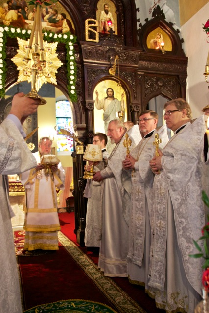 Dostojnym Hierarchom przy celebracji Świętej Liturgii asystowali ks. mitrat Jan Sezonow, archimandryta Teodozjusz, ks. mitrat Michał Dudicz, ks. prot. Doroteusz Sawicki, ks. prot. Jarosław Kadylak, ks. prot. Piotr Kosiński, ks. Tomasz Stempa, ks. protodiakon Jerzy Dmitruk, ks. protodiakon Rościsław Gwizdak i ks. diakon Andrzej Dawidziuk.