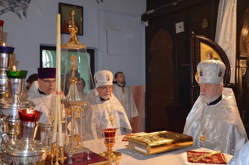W dniu dzisiejszym nasza Matka Cerkiew wspomina również Sobór Świętych Męczenników Chełmskich i Podlaskich, dlatego po zakończeniu Świętej Liturgii duchowieństwo udało się na środek naszej Cerkwi, gdzie pomimo troparionu, kondakionu i wieliczanija święta Wniebowstąpienia Pana naszego Jezusa Chrystusa odśpiewano również troparion, kondakion oraz wieliczanije Świętym Męczennikom Chełmskim i Podlaskim, a następnie pokłoniono się znajdującym się w naszej świątyni relikwiom Świętego Kapłana-Męczennika Bazylego (Martysza).
