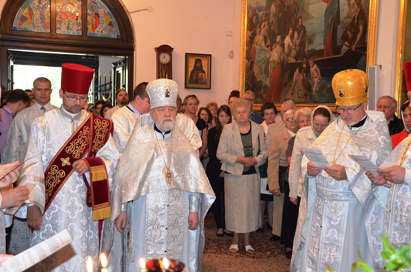 Uroczyste nabożeństwo w górnej Cerkwi celebrował Proboszcz Parafii – ks. mitrat Mikołaj Lenczewski, w asyście licznie zgromadzonego duchowieństwa: ks. mitrata Rościsława Kozłowskiego, ks. mitrata Michała Dudicza ks. prot. Jarosław Kadylaka, ks. prot. Piotra Kosińskiego, ks. prot. Piotra Rajeckiego oraz ks. protodiakona Jerzego Dmitruka. Dzieje Apostolskie (Dz 20, 16-18, 28-36) podczas dzisiejszej Świętej Liturgii przeczytał Łukasz Dudicz. Po przeczytaniu przez ks. protodiakona Jerzego Dmitruka fragmentu Świętej Ewangelii według Świętego Apostoła i Ewangelisty Jana (J 17, 1-13) kazanie wygłosił ks. prot. Piotr Kosiński.